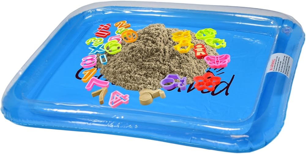 نقدم لك صندوق الرمل القابل للنفخ من كولساند. رمل اللعب الحركي كول ساند هو نجاح كبير للأطفال والكبار على حد سواء، والآن نقدم طريقة مريحة وخالية من الفوضى للتخزين واللعب مع كول ساند. ميزات المنتج: صندوق الرمل يمكن نفخه وتفريغه بسهولة للسفر والتخزين. يمكن طيها بأناقة مع مقابض الحمل المرفقة لسهولة الحمل. رائعة للاستخدام على أي سطح صلب! الأبعاد: 24? × 18؟ × 2.5؟ عند نفخها وطيها حتى 7.9؟ x 7.1? عند تفريغها. سعة 17 لتر تحمل ما يصل إلى 15 باوند من كوول ساند. كبيرة بما يكفي لطفلين ليمتلكون مساحة للعب! مصممة للأطفال من سن 3 سنوات فما فوق. كول ساند غير متضمن. حول كول ساند: رمل اللعب الحركي الفريد عالي الجودة الخاص بنا يشبه رمل الشاطئ الرطب ولكنه لن يلتصق بأي شيء سوى نفسه. بالإضافة إلى أنها تحتفظ بشكلها. وهذا يعني عدم وجود رمل على يديك أو في شعرك أو في حقيبتك. يترك يديك جافة تمامًا وغير دهنية. احضر الشاطئ إلى المنزل بدون فوضى! قم بتمديدها وقالب وشاهدها يتدفق من خلال أصابعك. الرمل الخاص بنا لا يجف لساعات من اللعب الإبداعي!