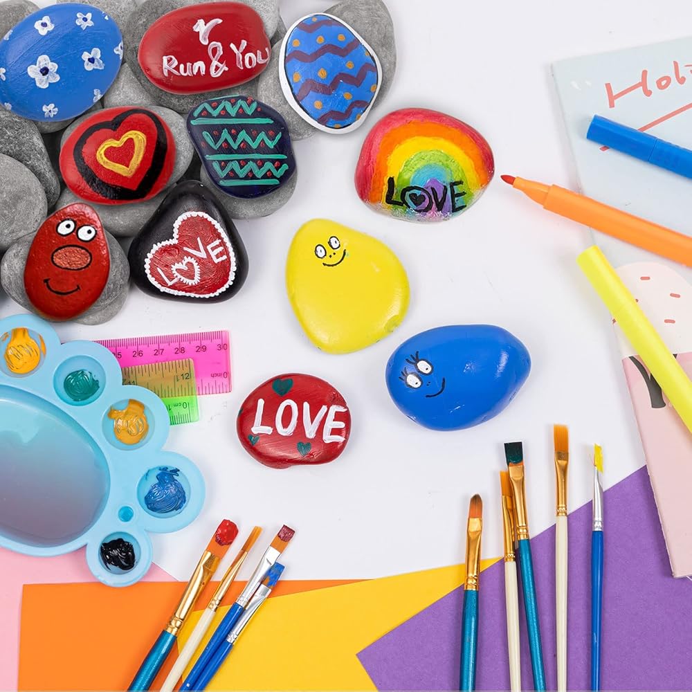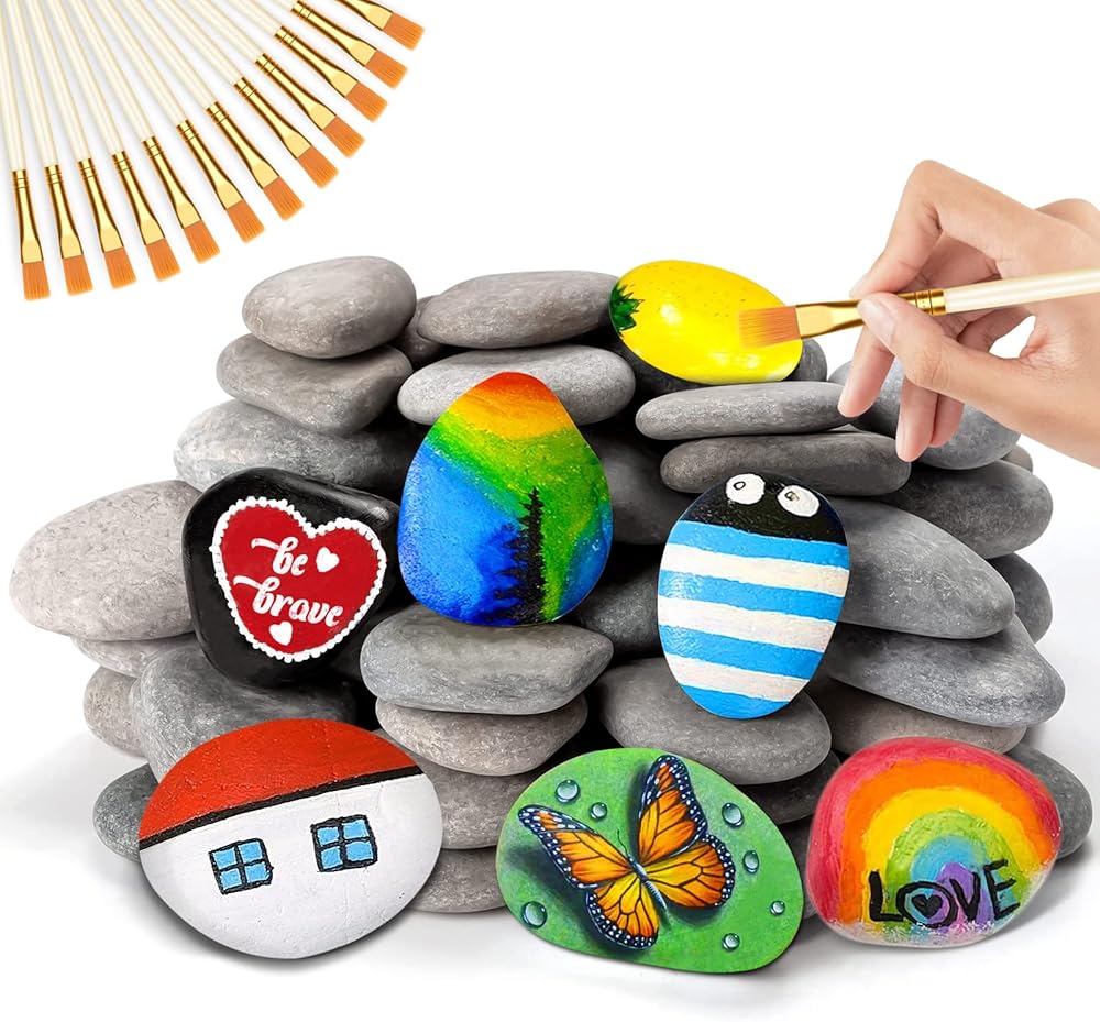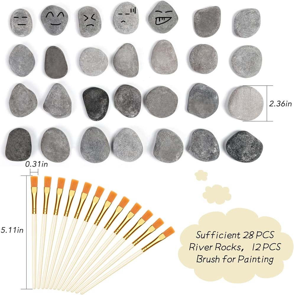 [مزيج رائع] سوف تحصل على 28 قطعة من صخور الرسم و12 قطعة من الفرش للطلاء، كافية ومريحة للحرف اليدوية الفريدة الخاصة بك ومشاركتها مع الأصدقاء.