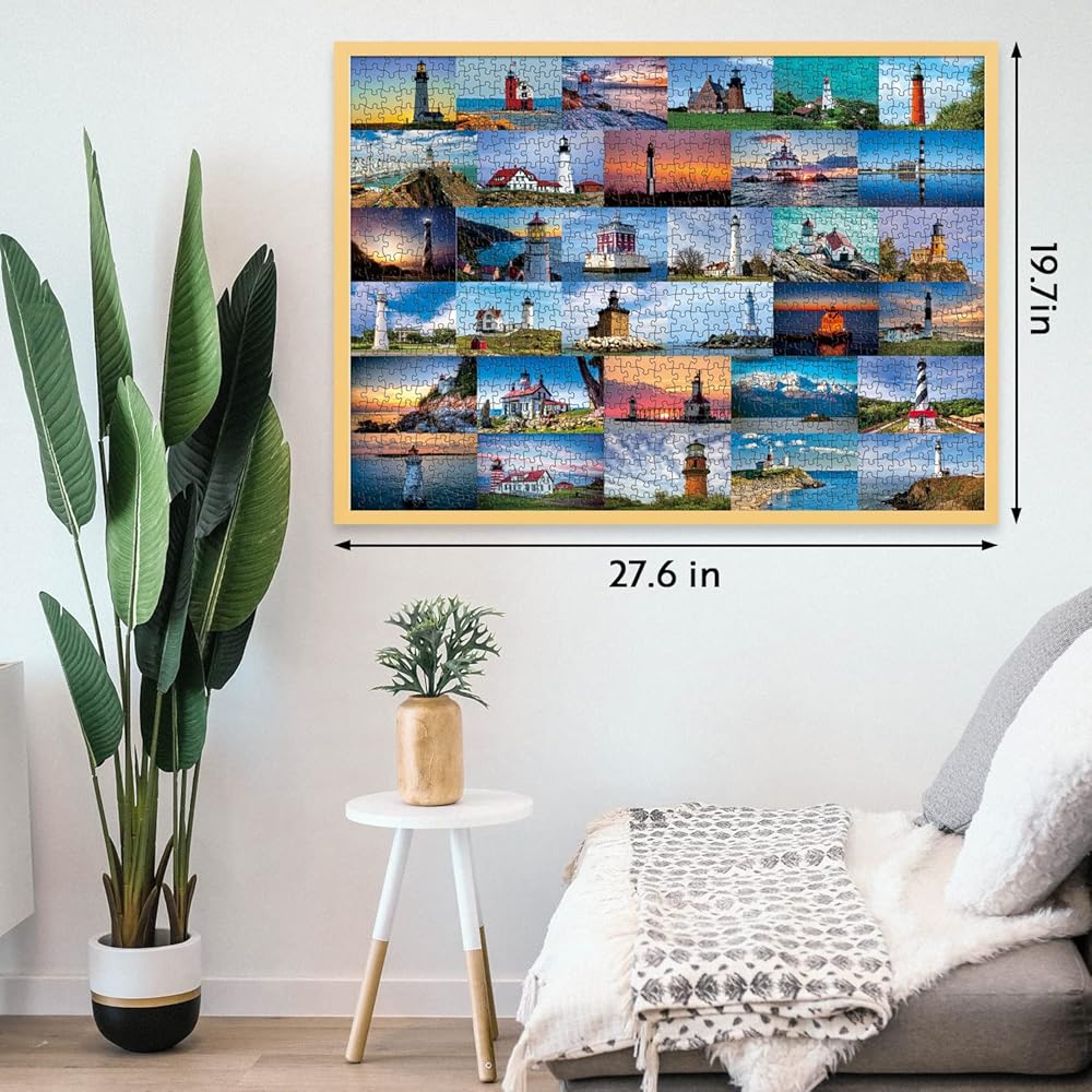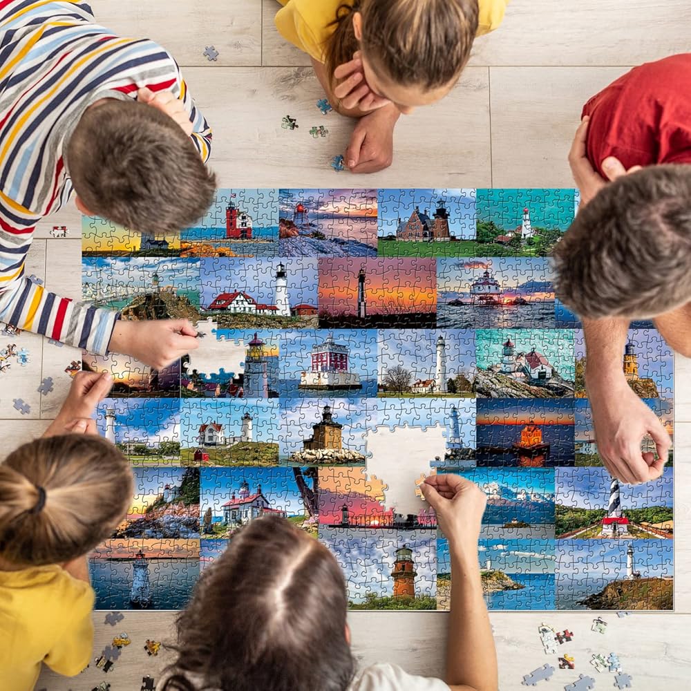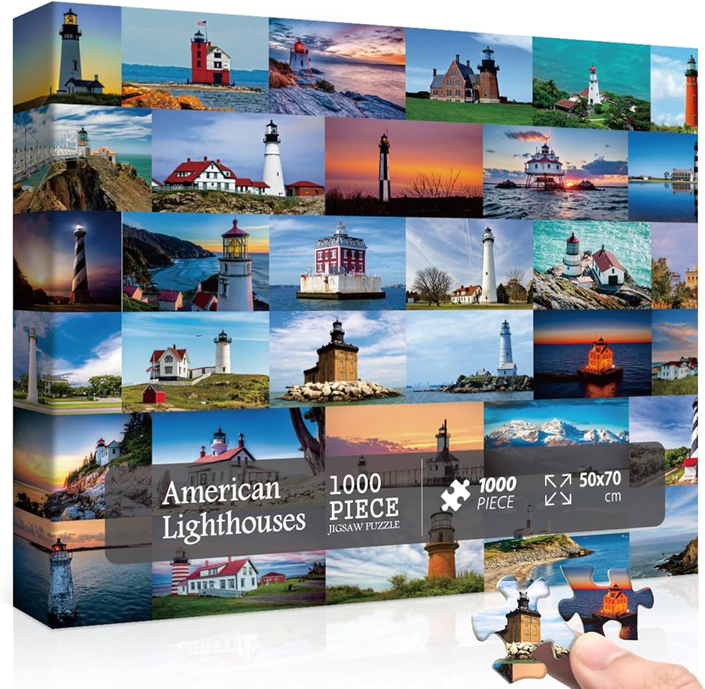 أحجية المنارة للبالغين 1000 قطعة، أحجية الشاطئ تتميز بـ 33 منارة أمريكية مشهورة، أحجية الصور المقطوعة للمنارة كهدايا للمنارة