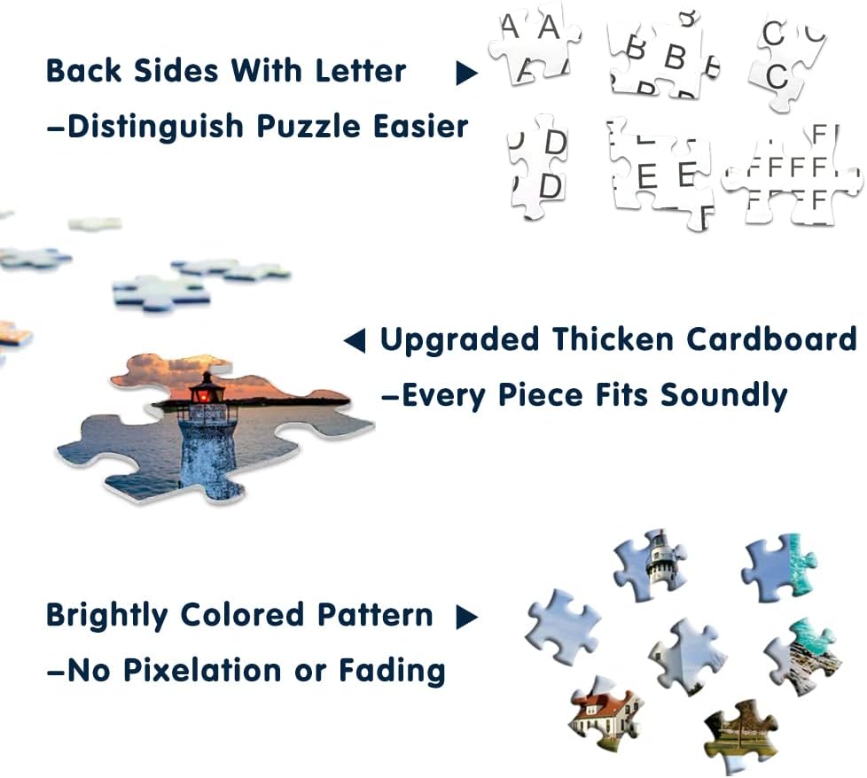 【محتويات العبوة】 أحجية المنارة مكونة من 1000 قطعة مع صندوق تغليف جميل ومتين، ملصق منارة عالي الدقة في الصندوق كمرجع. المقاس: 27.56*19.68 بوصة / 70*50 سم بعد الانتهاء.