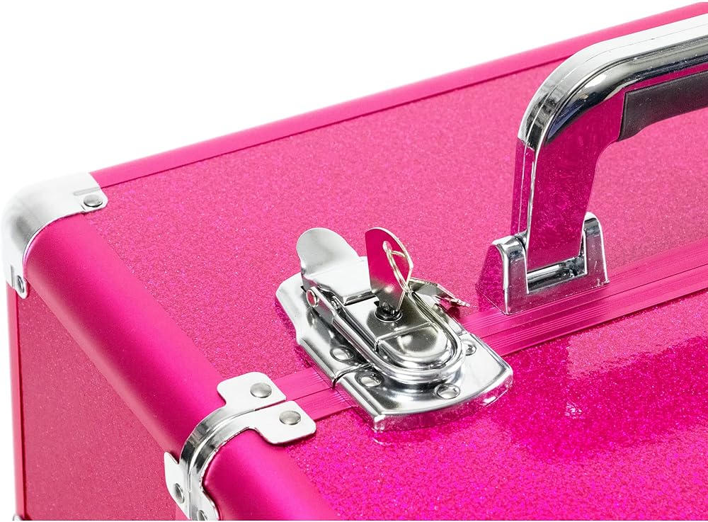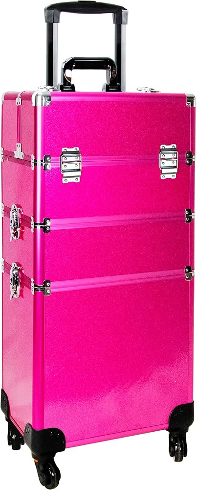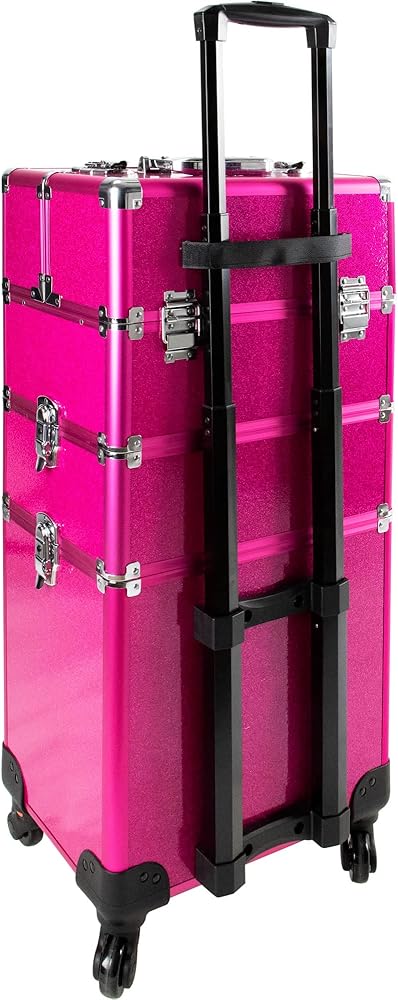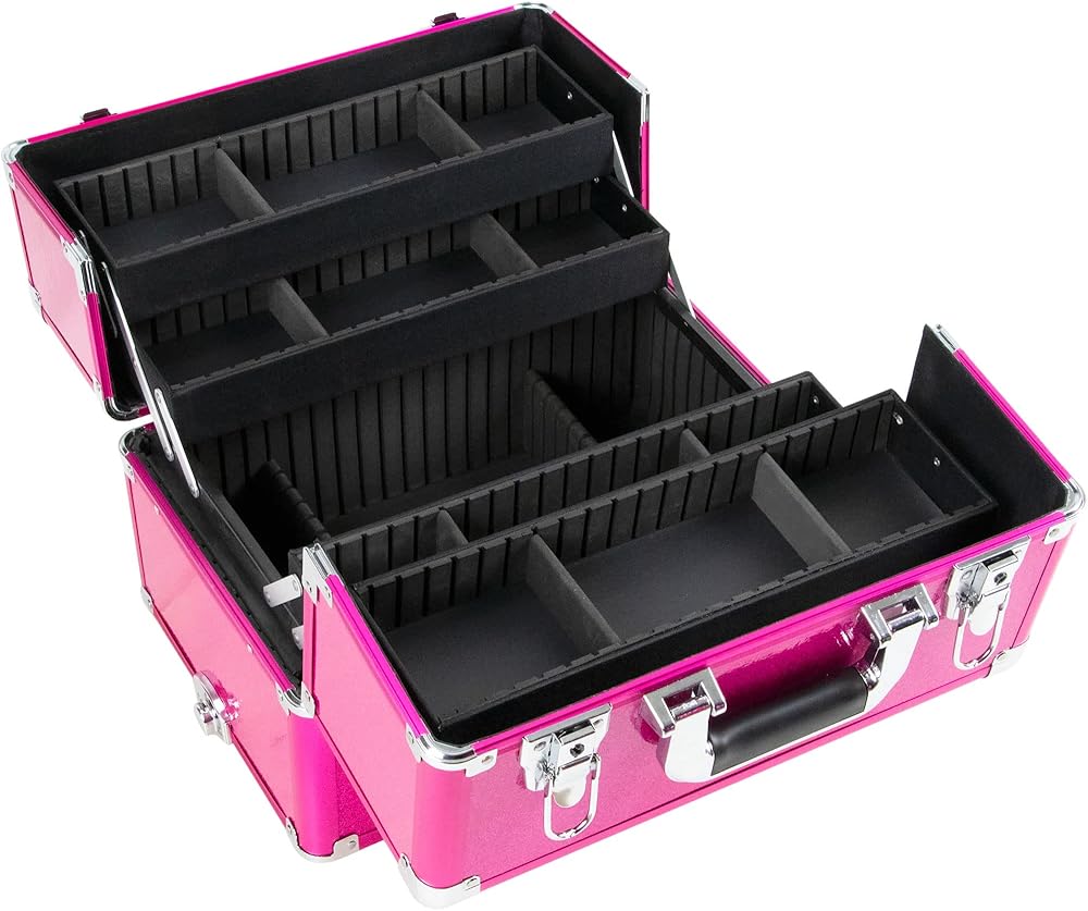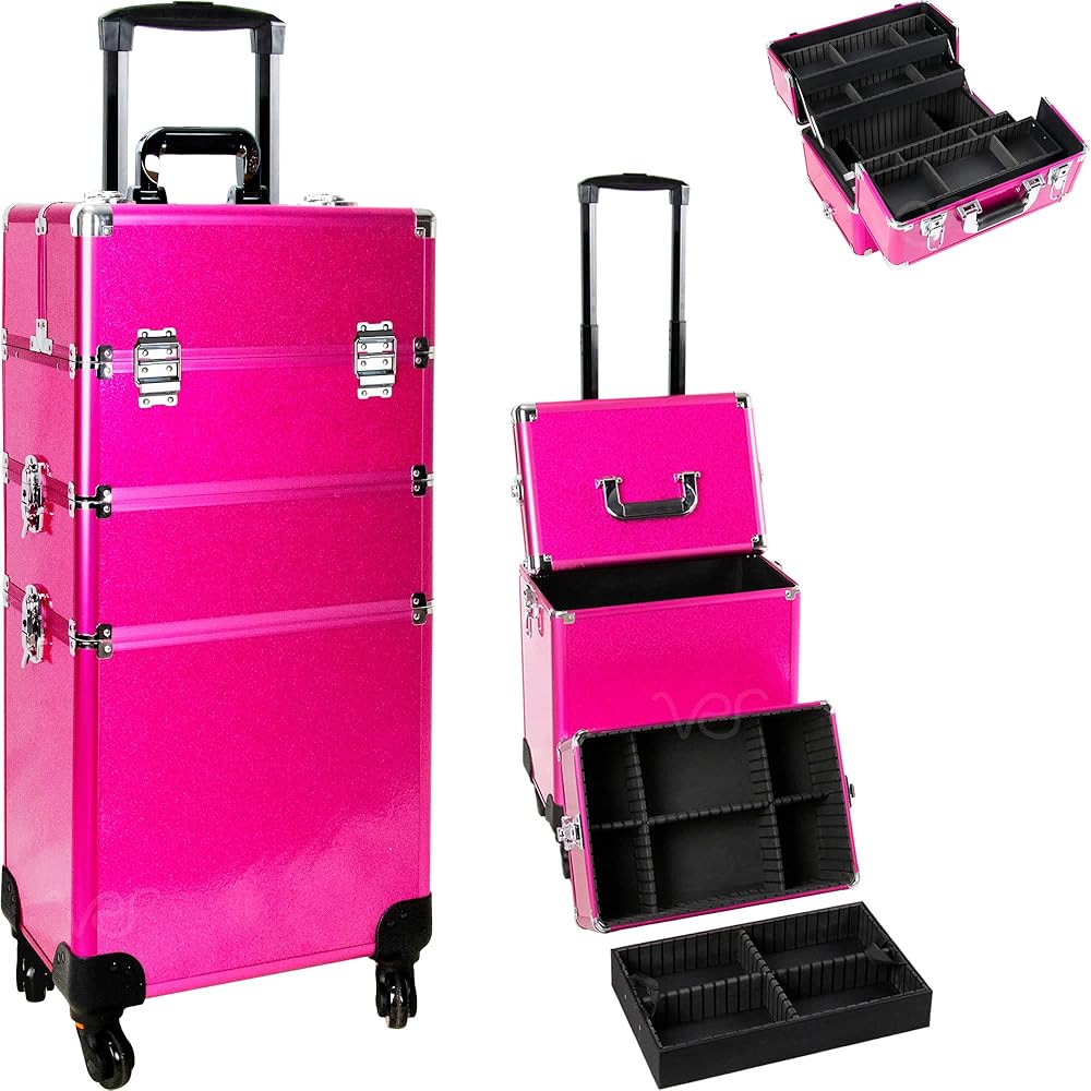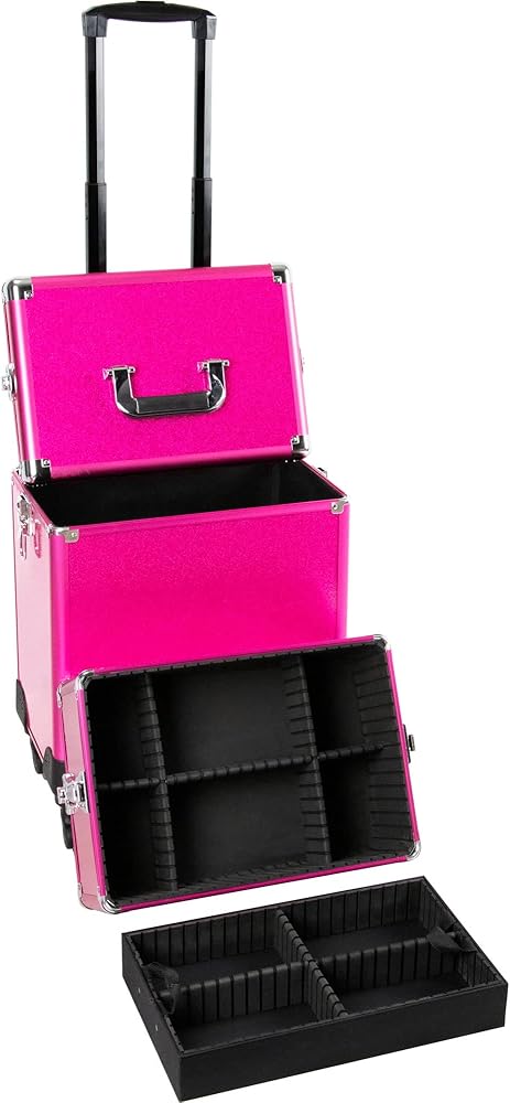حقيبة أدوات فنية قابلة للإزالة من Ver Beauty ذات 4 عجلات قابلة للإزالة، منظم تخزين للسفر وفواصل قابلة للتعديل - VT003، أرجواني لامع