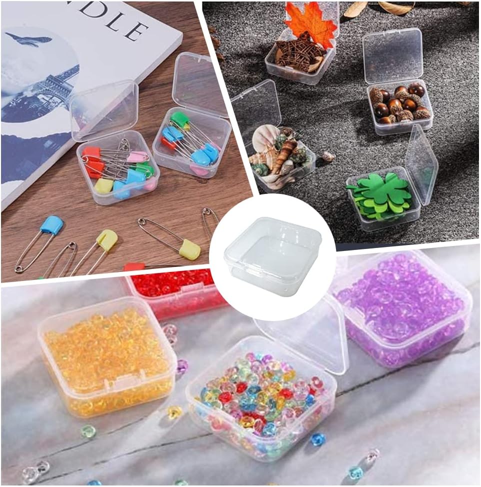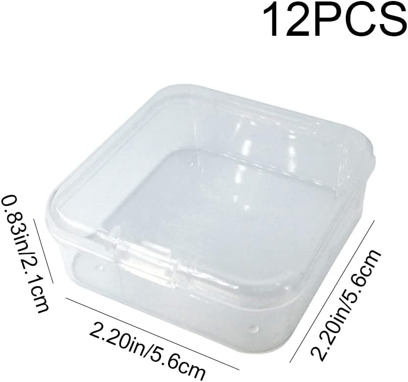 OHAOLYLE 12 قطعة صناديق تخزين مع أغطية خرز صغير حاويات صندوق تخزين بلاستيكية صغيرة مع غطاء قابل للطي صندوق مربع منظم صغير شفاف لجمع العناصر الصغيرة قطع ألعاب المجوهرات والحرف اليدوية