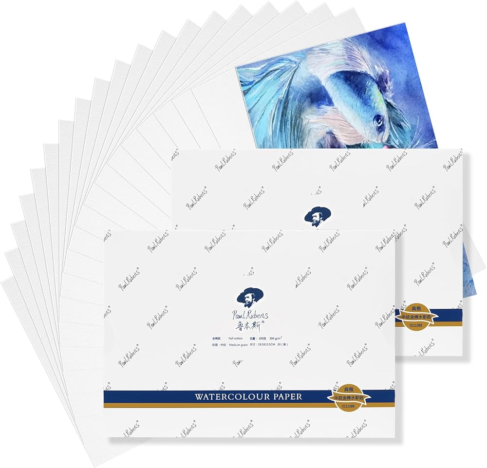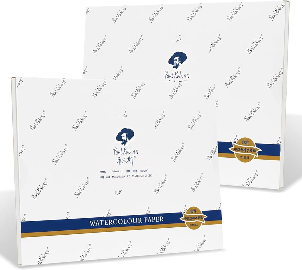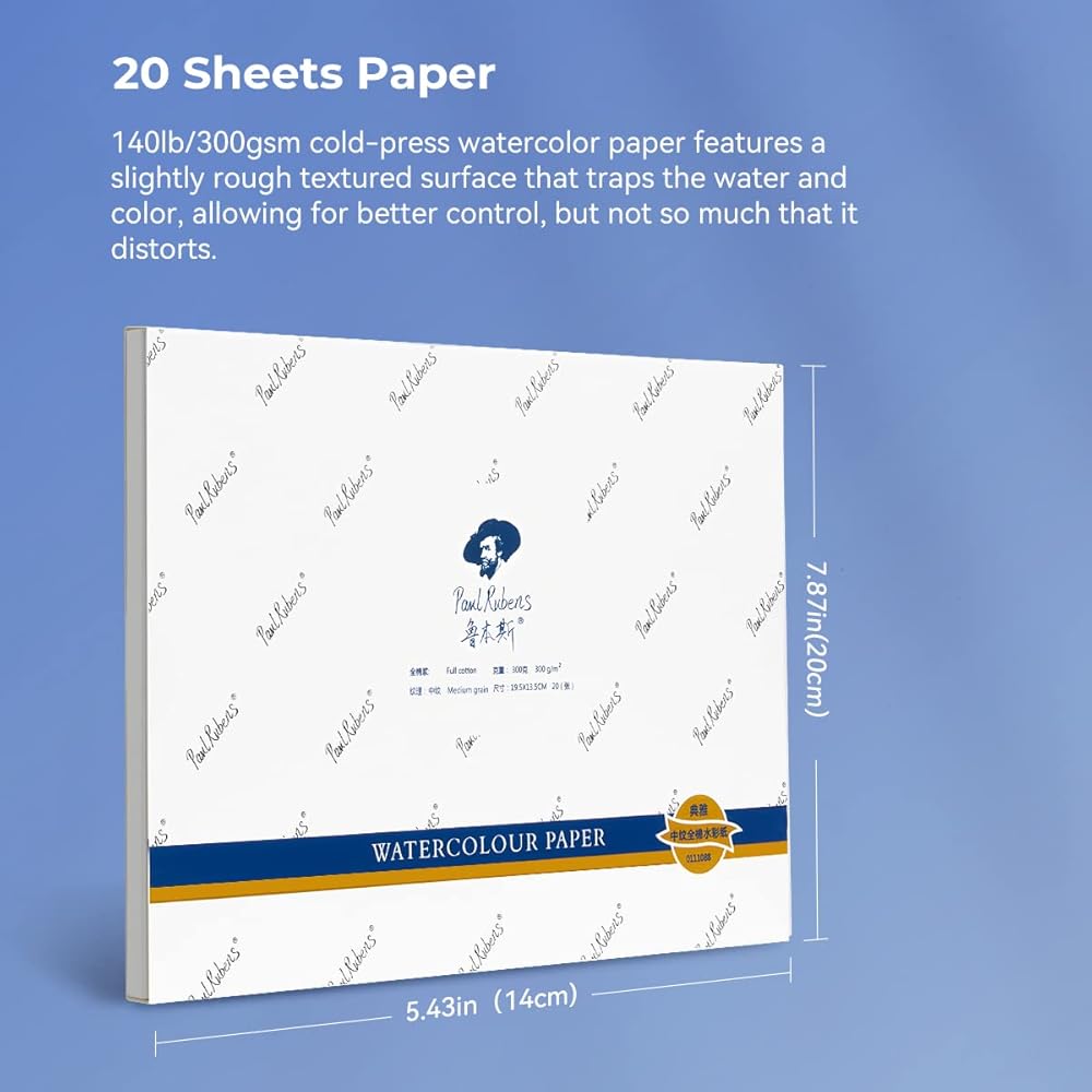 ورق تلوين مائي عالي الجودة بول روبنز للفنانين، ورق رسم خالٍ من الاحماض مضغوط على البارد 7.87 انش × 5.43 انش، 100% قطن 300 غرام لكل متر مربع، 40 ورقة، لوازم فنية للرسم بالألوان المائية للمبتدئين