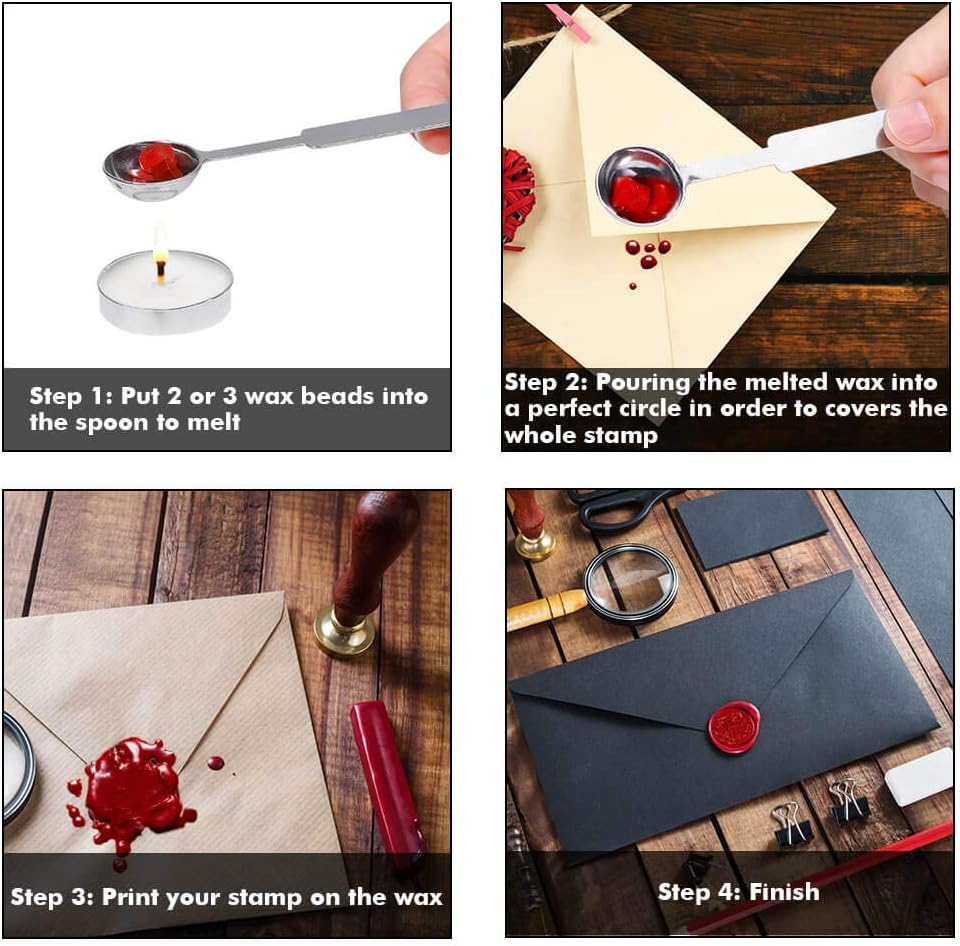 ملعقة معدنية ختم الشمع قد تتحول إلى أسود في اللهب، يمكنك مسحها بالماء أو غسلها نظيفة.