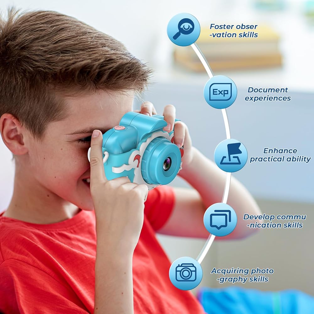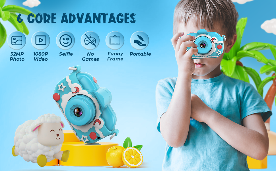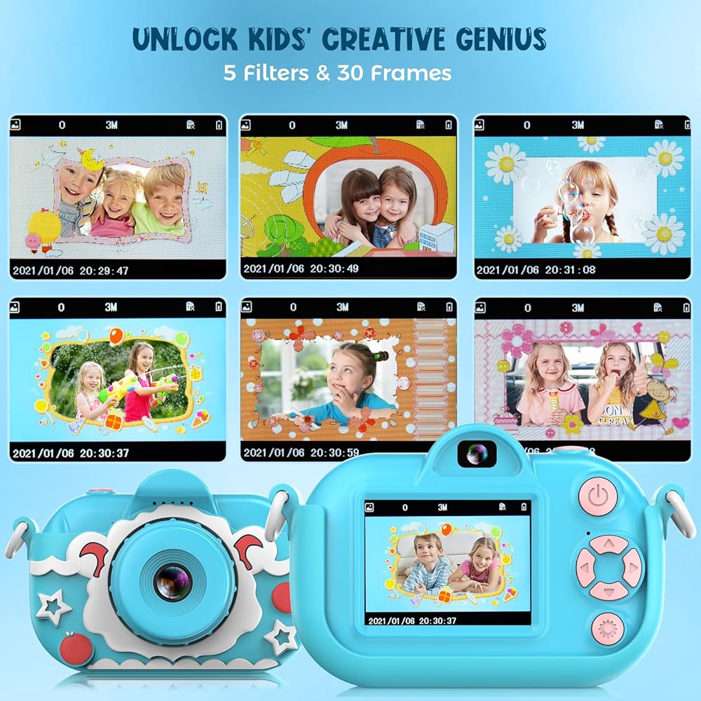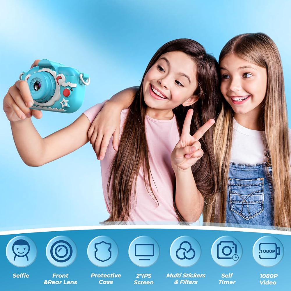 【متعددة الوظائف - سهلة التشغيل وخفيفة الوزن】- مثالية للمبتدئين، توفر كاميرا الأطفال خفيفة الوزن للغاية بدقة 1080 بيكسل وظائف متعددة، بما في ذلك التقاط الصور الذاتية وتسجيل الفيديو والتشغيل والتعبير الإبداعي باستخدام ملصقات الرسوم المتحركة وإطارات الصور. استمتع بمتعة لا نهاية لها والاستكشاف الإبداعي.
