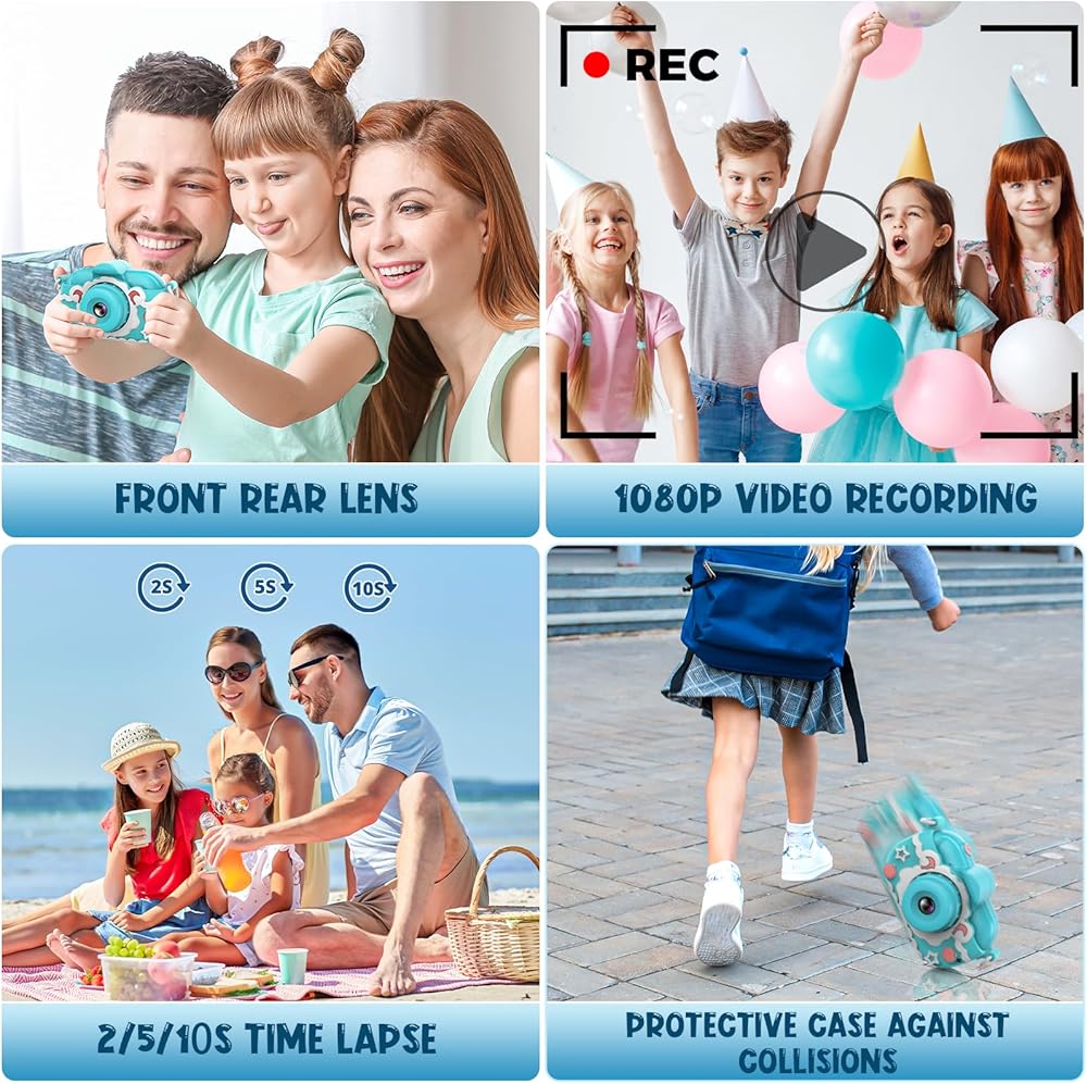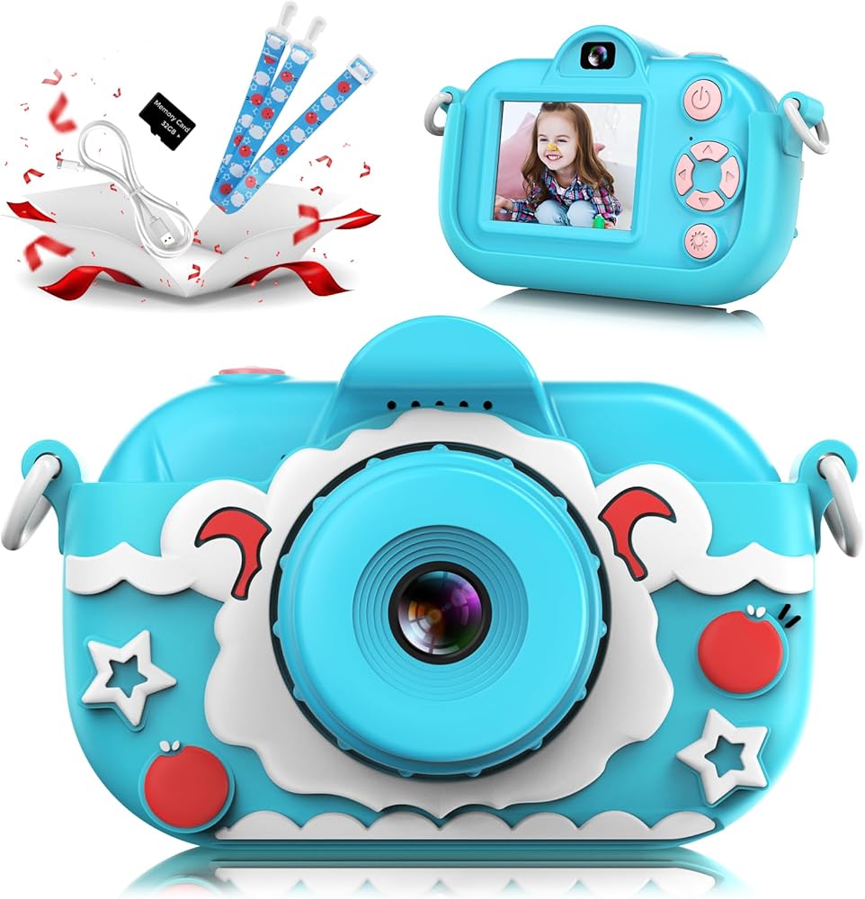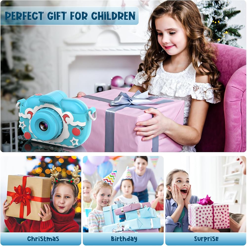 كاميرا للأطفال، كاميرات مزدوجة 1080 بكسل عالية الدقة للأطفال الصغار مع بطاقة 32 جيجابايت، كاميرا رقمية لصور شخصية للأولاد والبنات من سن 3 إلى 9 سنوات، كاميرا لعبة صغيرة للأطفال هدية عيد ميلاد عيد الميلاد