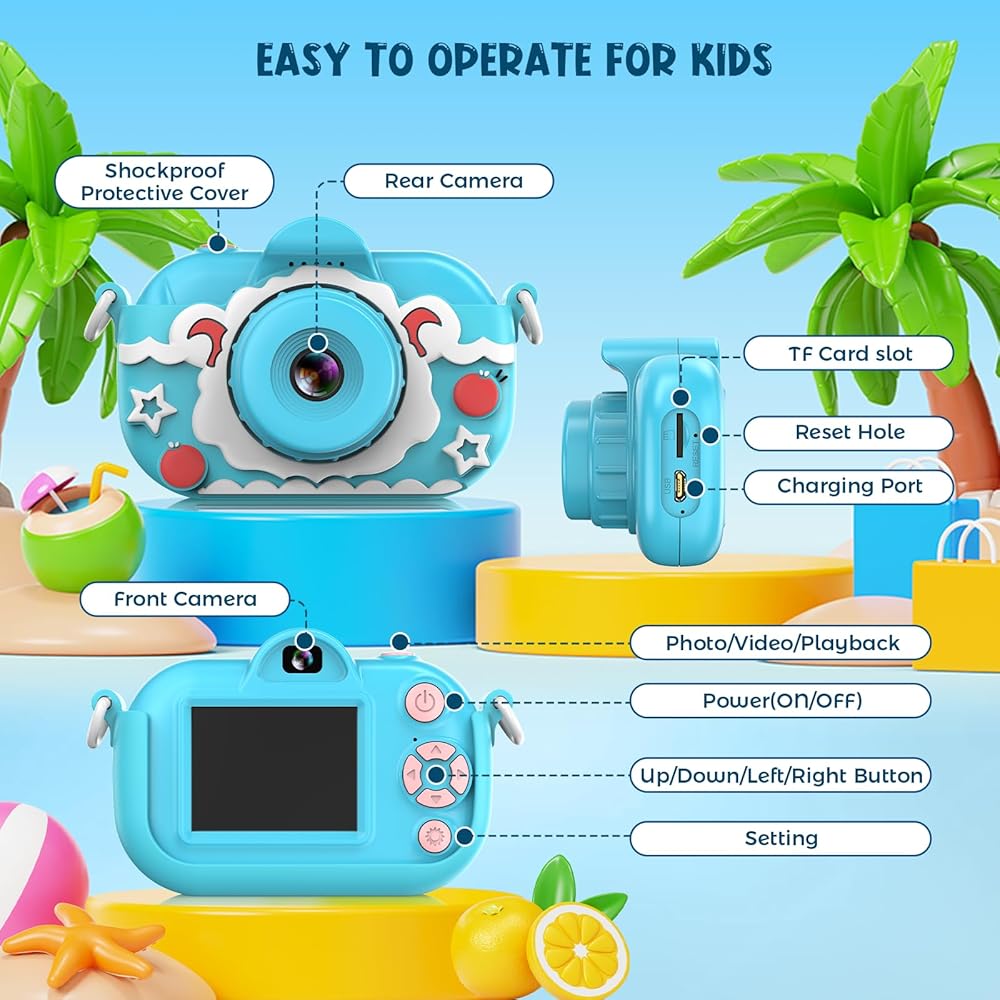 【كاميرات مزدوجة - التقاط الذكريات والحفاظ عليها】- تدعم كاميرا الأطفال الصغار هذه التصوير بالكاميرا الأمامية والخلفية، حتى تتمكن من التقاط صورة سيلفي أو التقاط صورة مع الأصدقاء في الحفلة. حجم صغير، مثالي لأيدي الأطفال الصغيرة، مما يجعل من السهل على الأطفال التقاط الصور أثناء التنقل. اكتشف إمكانات التصوير الفوتوغرافي باستخدام الكاميرات المزدوجة الأمامية والخلفية لكاميرا الأطفال لدينا!