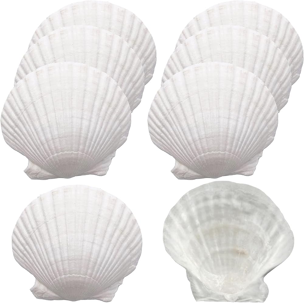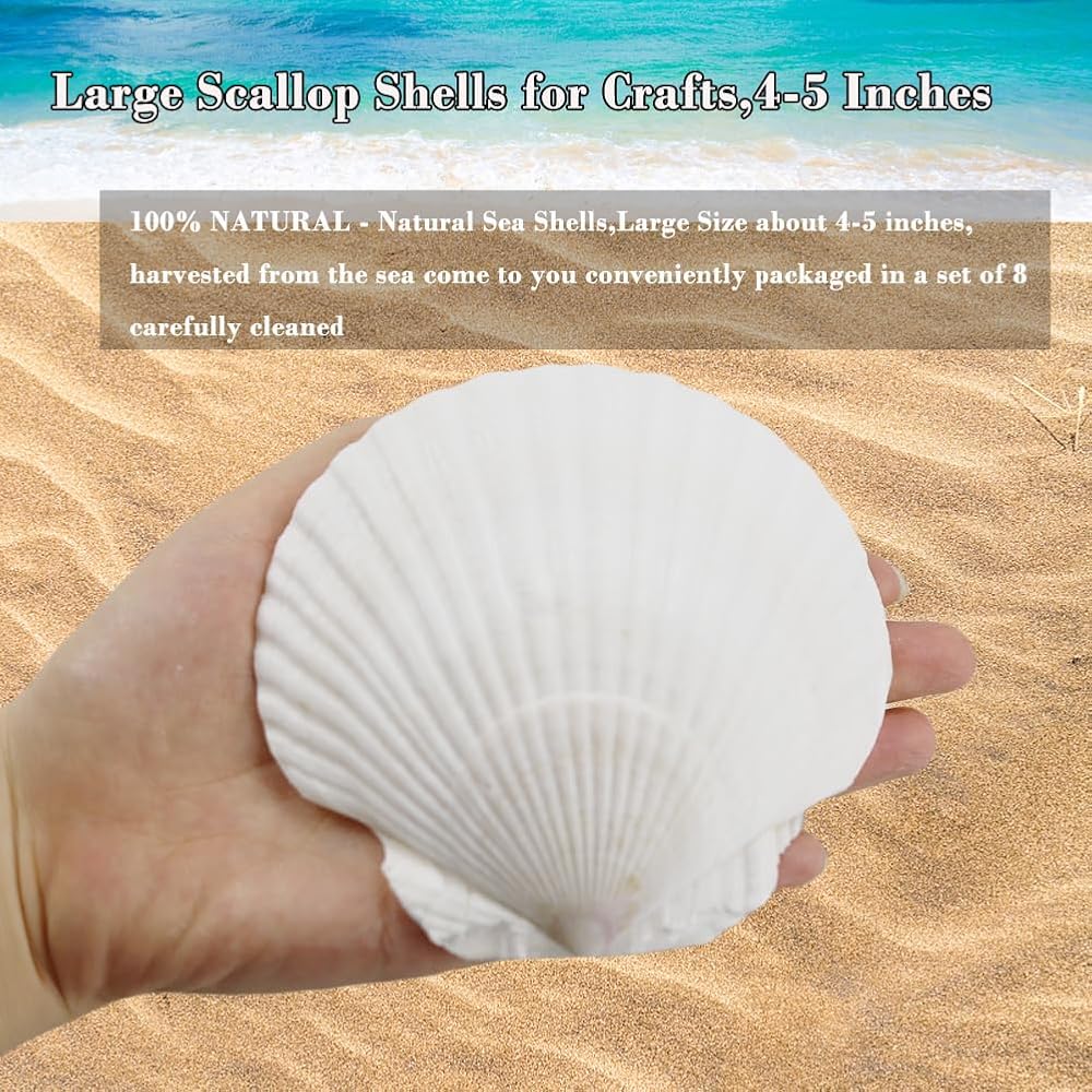 Miraclekoo 8 قطع قذائف سكالوب كبيرة للحرف اليدوية، 4-5 بوصة قذائف الخبز الطبيعية الكبيرة قذائف البحر الأبيض الأسقلوب لديكور الزفاف الحرف اليدوية اللوحة