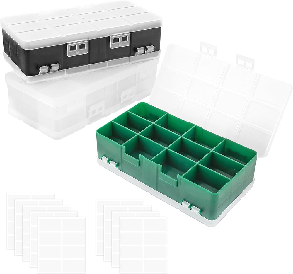 صندوق تنظيم بلاستيكي مكون من 3 عبوات من 24 شبكة من PTSGCAI، حاوية صندوق تنظيم بلاستيكية شفافة بتصميم مفتوح على الوجهين مع ملصقات ملصقات للمجوهرات والحرف اليدوية الفنية وأشرطة الواشي والخرز والأجزاء الصغيرة