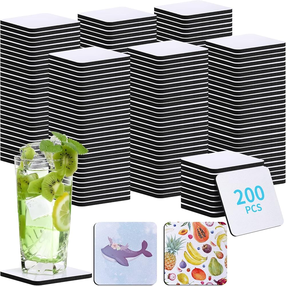 200 قطعة من قواعد الأكواب الفارغة من Skylety بيضاء مربعة فارغة من المطاط لنقل التسامي والطباعة بالضغط الحراري وصور الحرف اليدوية، 3.93 × 3.93 بوصة