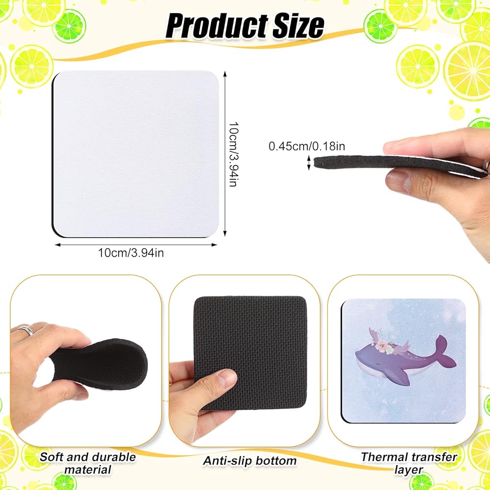 • 200 Pieces of White Sheets: the package contains 200 pieces of sublimation blank cup coasters, each measures approx. 3.93 x 3.93 inch/ 10 x 10 cm with a thickness of 0.18 inch/ 0.45 cm for individual coasters, the insulation is good, which will reduce the negative influence of heat on the desk, the sufficient quantity can meet your daily needs