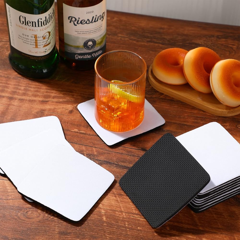 • Non Slip Bottom: with a non slip rubber base, the neoprene square sublimation coasters will grip the tabletop and prevent them from sliding or moving easily, keeping your desktop clean and away from stains, water marks and scratches