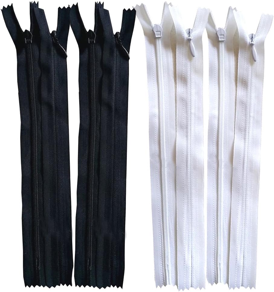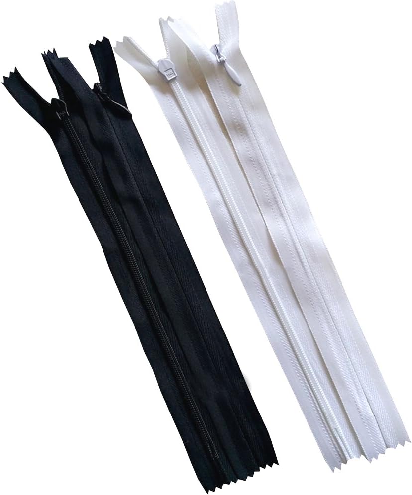 20 قطعة 50 سم (20 بوصة) أسود وأبيض سحابات نايلون غير مرئية لخياطة خياطة الصرف اليدوية ملحقات الملابس