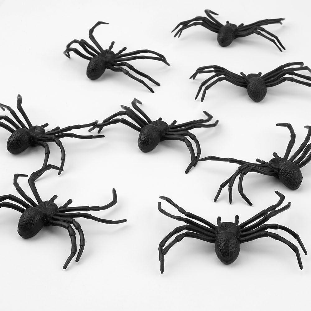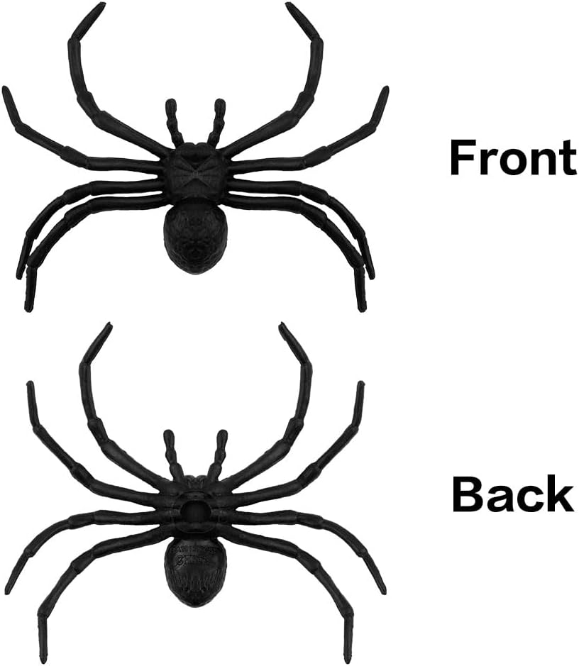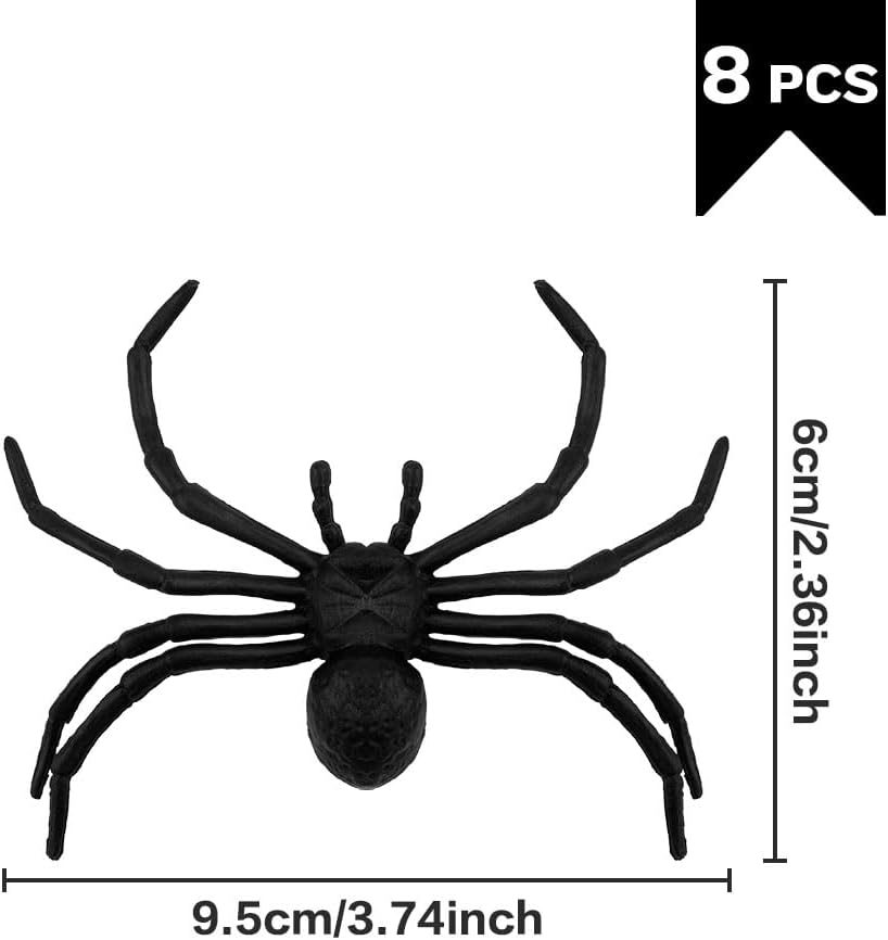مادة موثوقة: ديكورات عنكبوت الهالوين مصنوعة من بلاستيك عالي الجودة، آمن، ليس من السهل كسره. 8 قطع 3.9 × 3.7 بوصة عناكب الهالوين الصعبة.