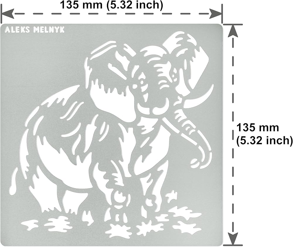 Aleks Melnyk No.478 استنسل معدني، حيوان ثديي الفيل، حيوان سفاري، استنسل صغير، قطعة واحدة، قالب لحرق الخشب، النقش، الحرف اليدوية، سجل القصاصات، الفن