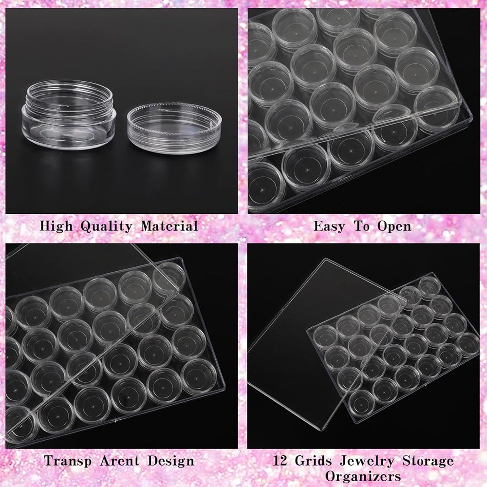 4 عبوات من منظمات الخرز الشفاف وحاويات التخزين مع أغطية وحاويات خرز طلاء ماسي من أجل الحرف الفنية والمجوهرات وأقراط الخياطة وحبوب الأظافر والأشياء الصغيرة (24 شبكة)