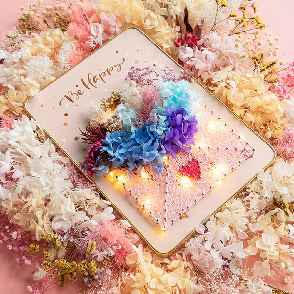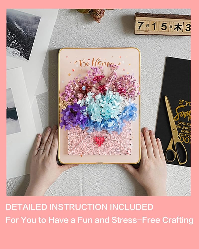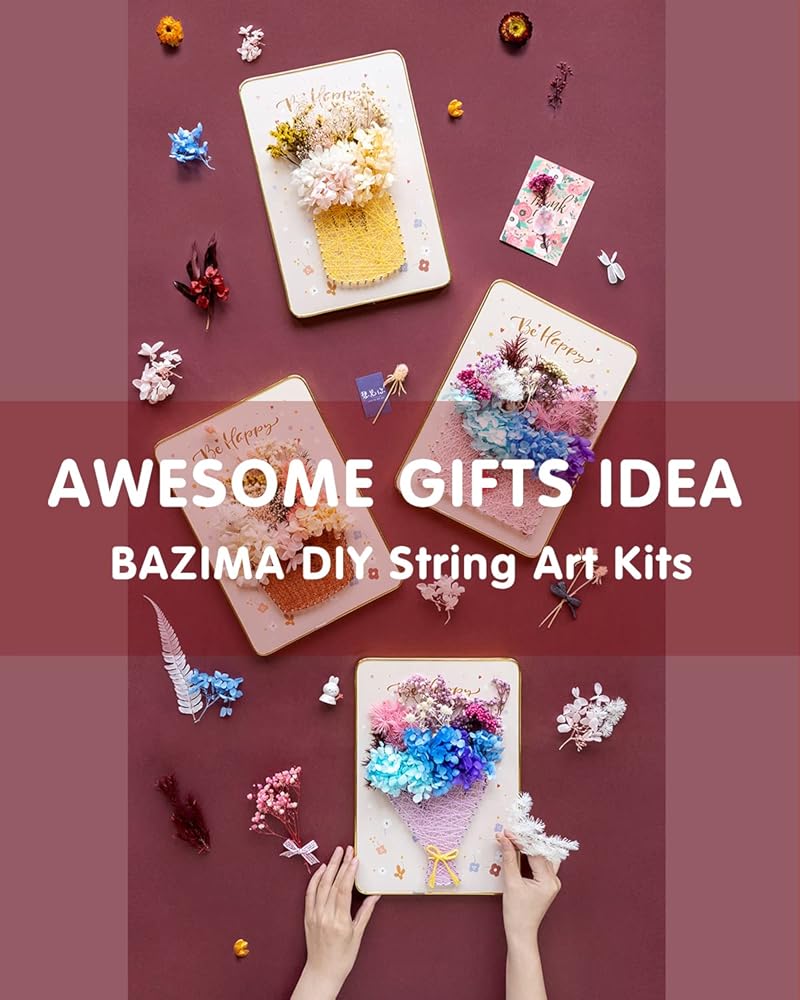 مجموعة فن الخيوط اليدوية للمبتدئين من بازيما، فن خيوط الزهور، مجموعة حرفية الزهور المجففة التي تصنعها بنفسك، هدية فريدة من نوعها، مجموعة الحرف اليدوية للعطلات، المغلف والزهور