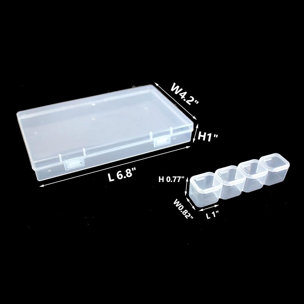 This 4 pcs small items organizer is a perfect solution for organizing your craft supplies! With 1 large outer box and 7 small inner boxes, each with 4 grids, you'll have plenty of space to store your diamonds, paintings, embroidery thread, beads, nail art supplies, small findings, and more. The outer box measures L 6.8" x W4.2" x H1", and each grid has dimensions of L 1" x W0.82" x H 0.77", providing ample space for your small items. Made of durable plastic, these boxes are perfect for keeping your supplies organized and easy to access. With their colorful design, they'll add a touch of fun to your crafting space. Get your hands on our mini storage organizer boxes today and keep your crafting supplies neat and tidy!