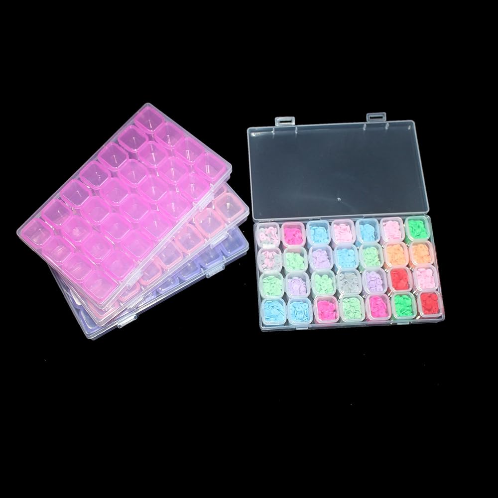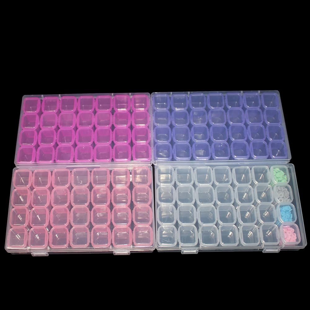 4 قطع ملونة من LVDGE 28 شبكة (112 فتحة) حاوية تخزين اللوحة الماسية، صناديق تنظيم صغيرة بلاستيكية شفافة للتطريز والخرز ولوازم فن الأظافر والحرف اليدوية، نتائج صغيرة