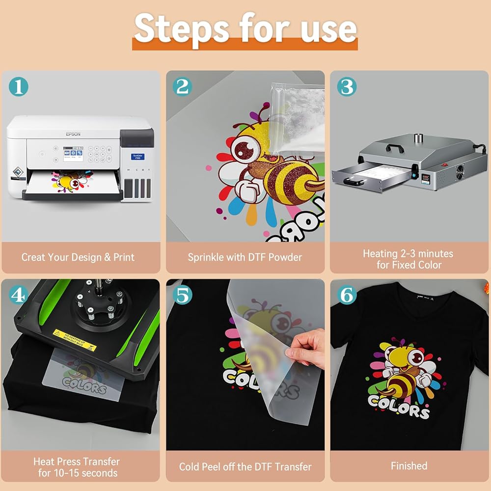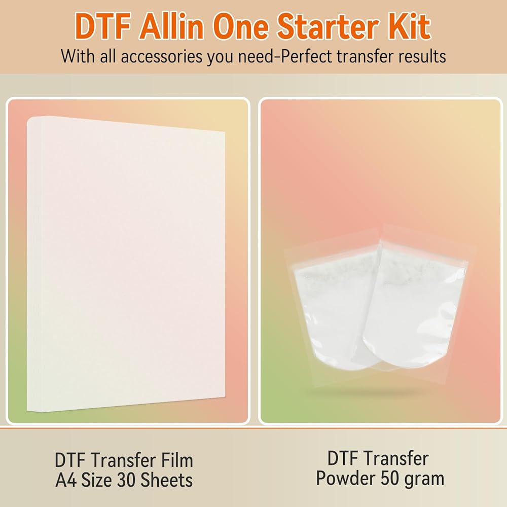 🎄【جودة احترافية】🎄 طبقة نقل DTF الخاصة بنا ذات سطح عالي الجودة وامتصاص ممتاز للحبر ويمكن أن تنتج مطبوعات واضحة وعالية الألوان. تحتوي عبوتنا على 30 ورقة من فيلم النقل DTF الاحترافي مقاس A4 (8.3 × 11.75 بوصة) وتوفر لك 50 جرامًا من مسحوق DTF القابل للتصرف (قابل لإعادة الاستخدام) مجانًا.