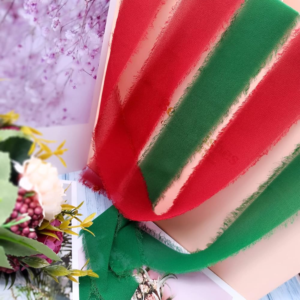 مجموعة أشرطة شيفون عيد الميلاد: 2 مجموعة أشرطة شيفون حمراء و2 خضراء لعيد الميلاد من السهل ملاءمتها مع مختلف الملابس والمناسبات، مثالية لشريط الدعوة، وتزيين الزفاف، وتغليف الهدايا، وتزيين سلة الزهور، وديكور الباقة، وغيرها من ديكورات المشاريع. يمكنك قص هذه الأشرطة بالشكل والحجم المرغوب فيه لتزيين الحرف اليدوية حسب خيالك.