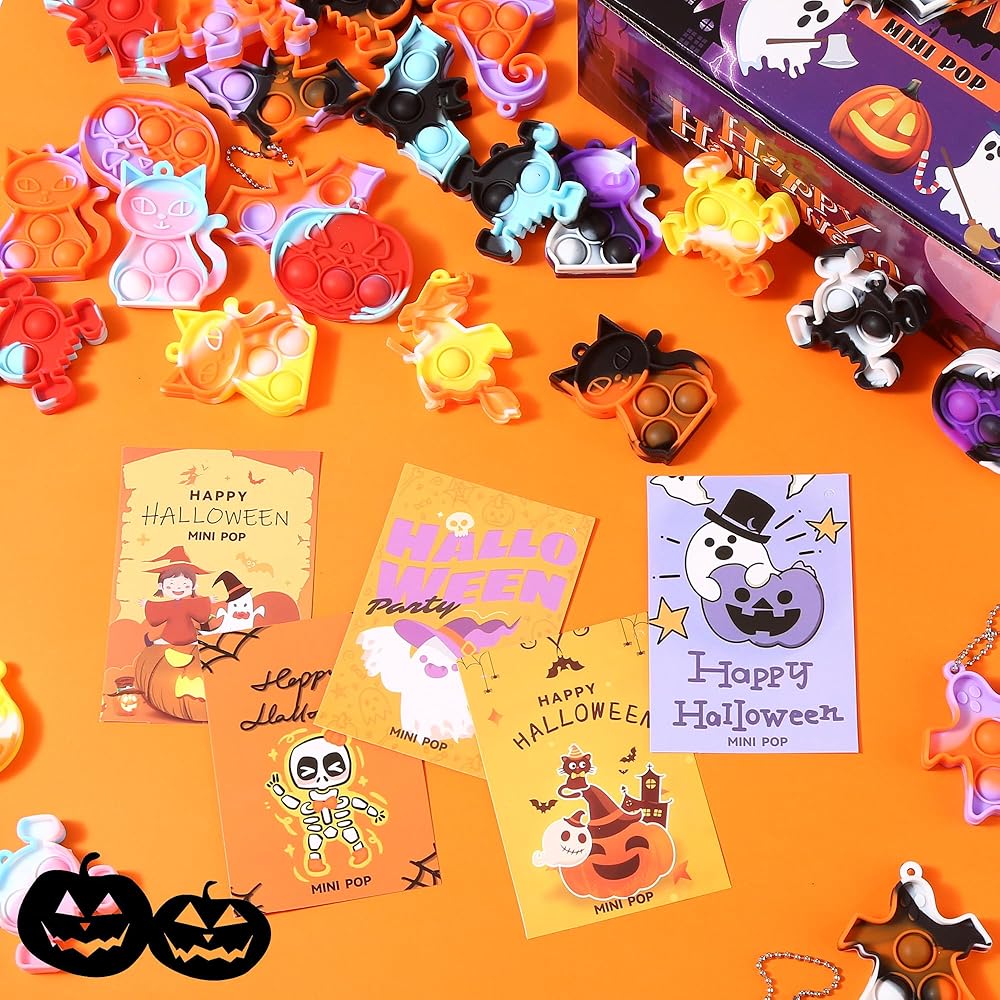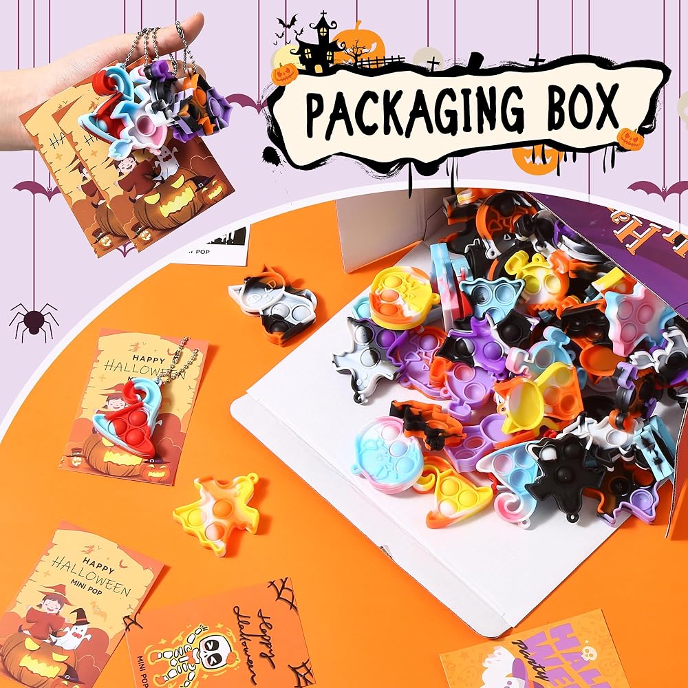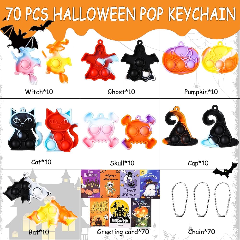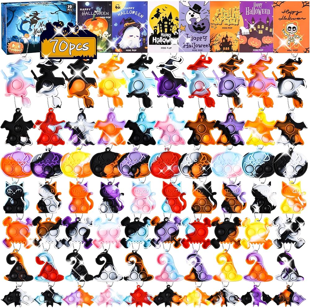 لعبة بوب فيدجيت صغيرة للهالوين، لوازم هدايا حفلات الهالوين، سلسلة مفاتيح صغيرة، حقائب هدايا لتخفيف التوتر، 70 قطعة