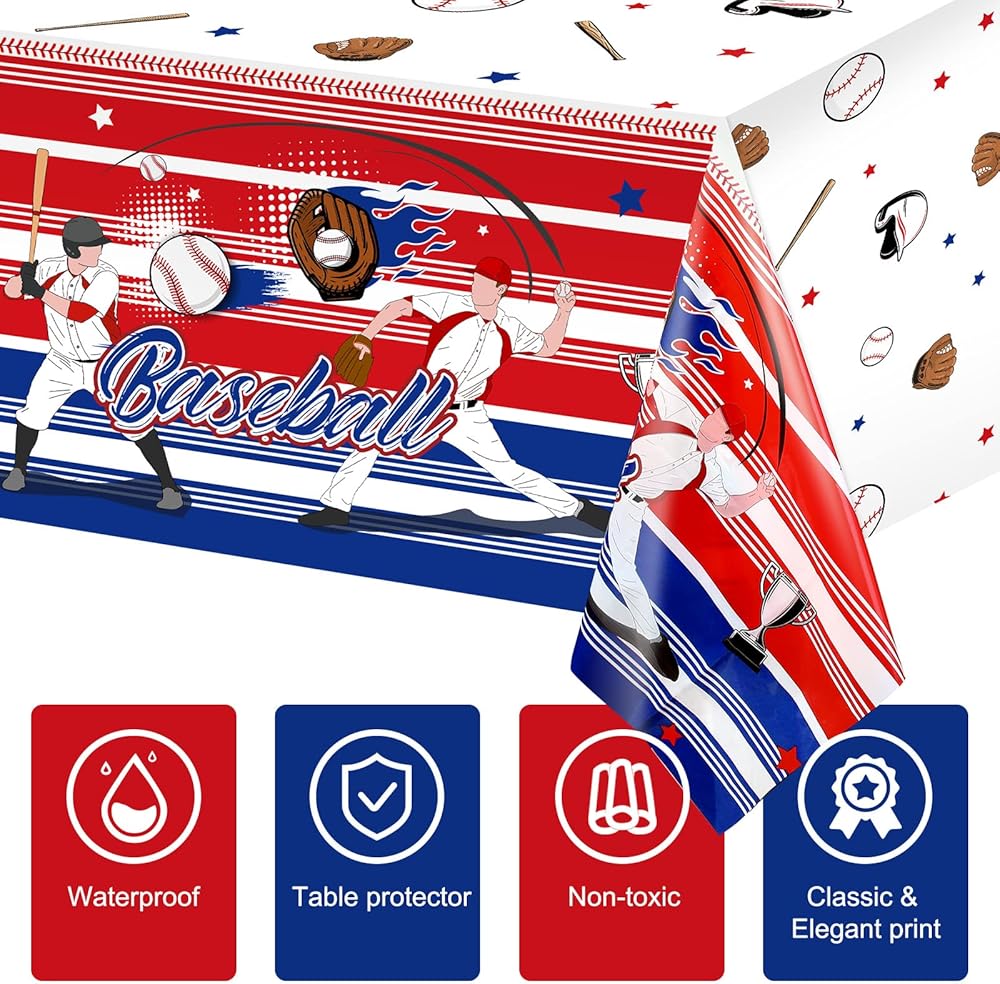 ملابس طاولة البيسبول المستطيلة مصنوعة من مواد بلاستيكية ممتازة، مقاومة للماء وموثوقة، آمنة وعديمة الرائحة، تحمي طاولتك وتزيين حفلتك ذات الطابع الرياضي، اختيار عملي.