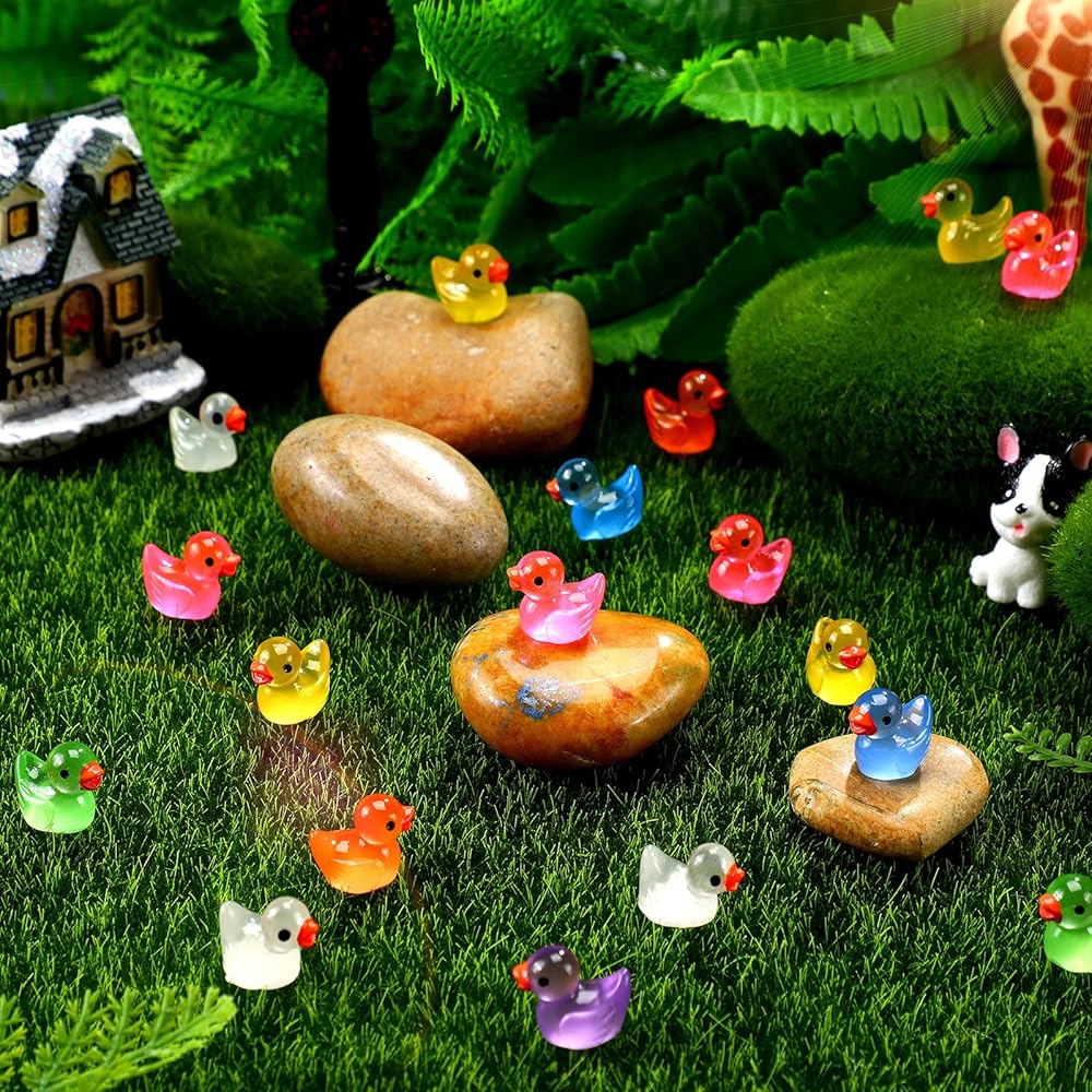 420 قطعة من بطات الراتنج الصغيرة المضيئة من Geetery تتوهج في الظلام، بطات صغيرة، أشكال مصغرة، بطة للحديقة، المناظر الطبيعية، حوض السمك، بيت الدمى، زينة النباتات بوعاء، ديكورات يدوية (7 ألوان)