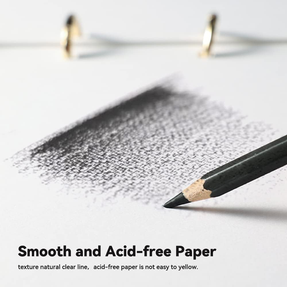 ورق أملس وخالي من الأحماض: يمكن للورق المتقدم أن يقدم خطًا طبيعيًا واضحًا والمتانة الرائعة تسمح لك بالتكديس بشكل متكرر ومسح دون ترك آثار أو وبر. الورق الخالي من الأحماض ليس من السهل أن يتحول إلى اللون الأصفر، لذلك يمكن لكراسة رسم الفنان أن تضمن دوام أعمالك الفنية، وهي رائعة للمحترفين في رسم الرسومات.