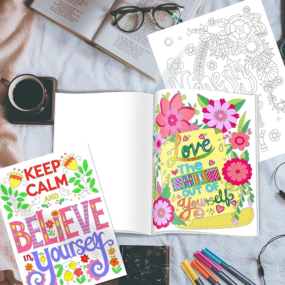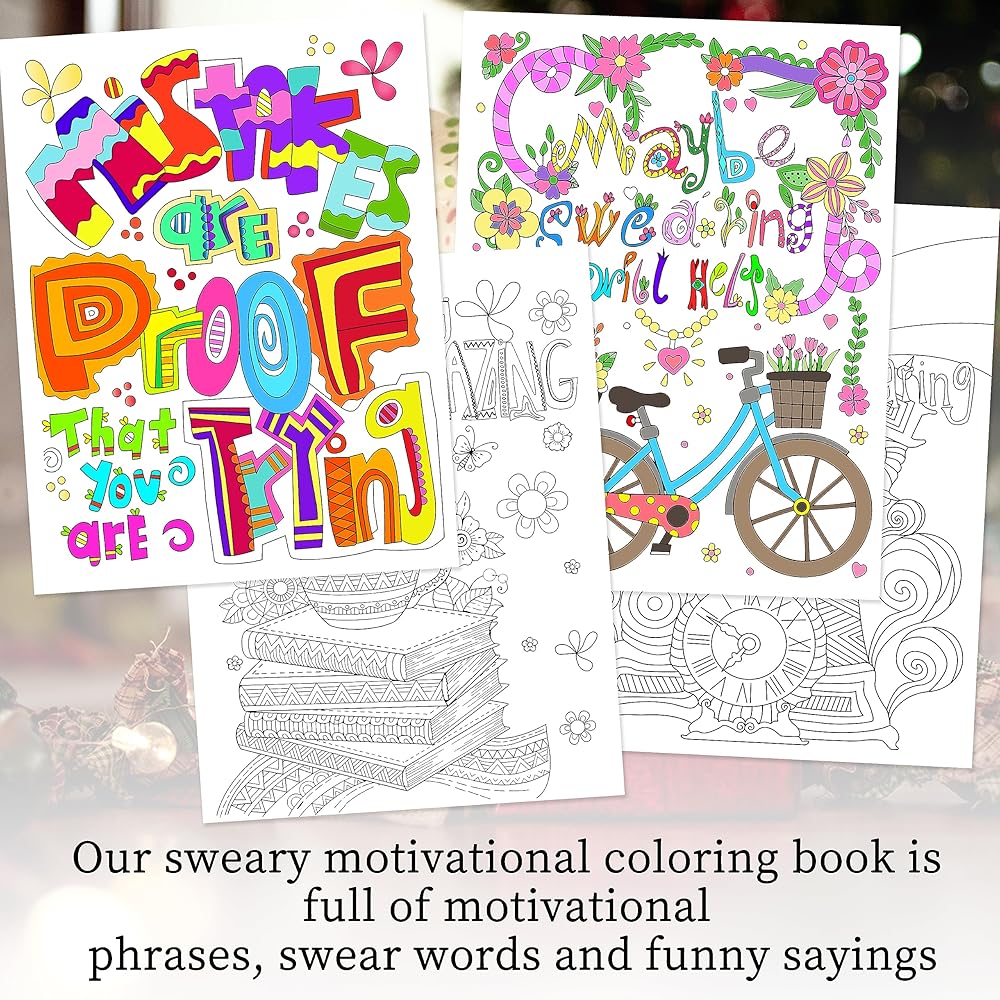 كتب تلوين للكبار تحفيزية من Elfew للنساء، كتاب تلوين مضحك للبالغين مع اقتباسات تحفيزية، تخفيف التوتر والقلق لدى البالغين والاسترخاء، هدية ملهمة للنساء والبالغين والمراهقين