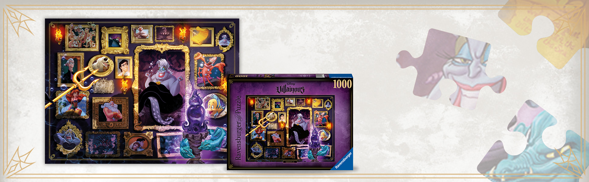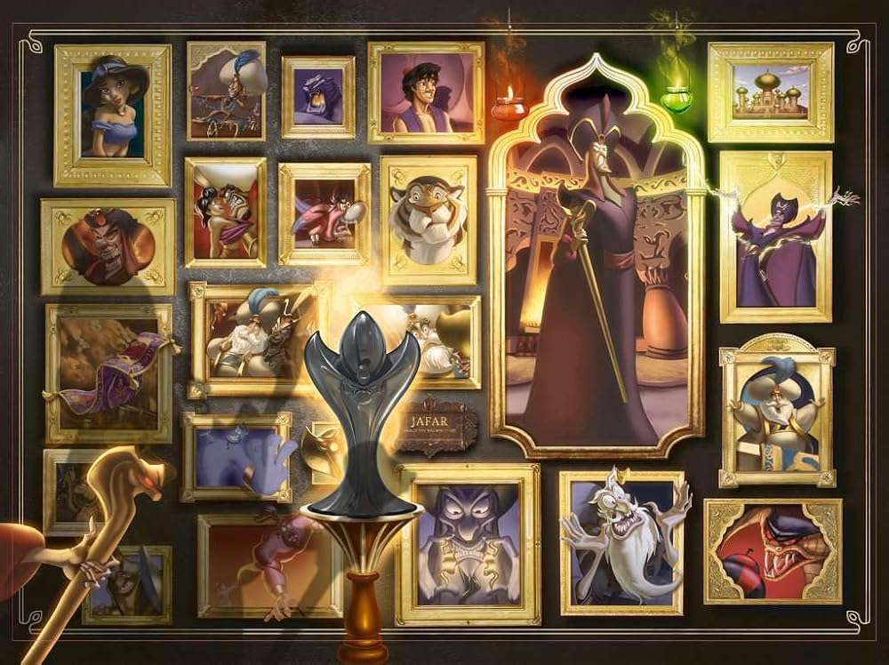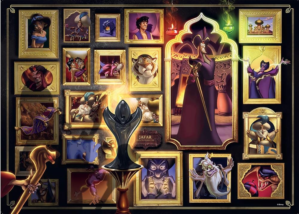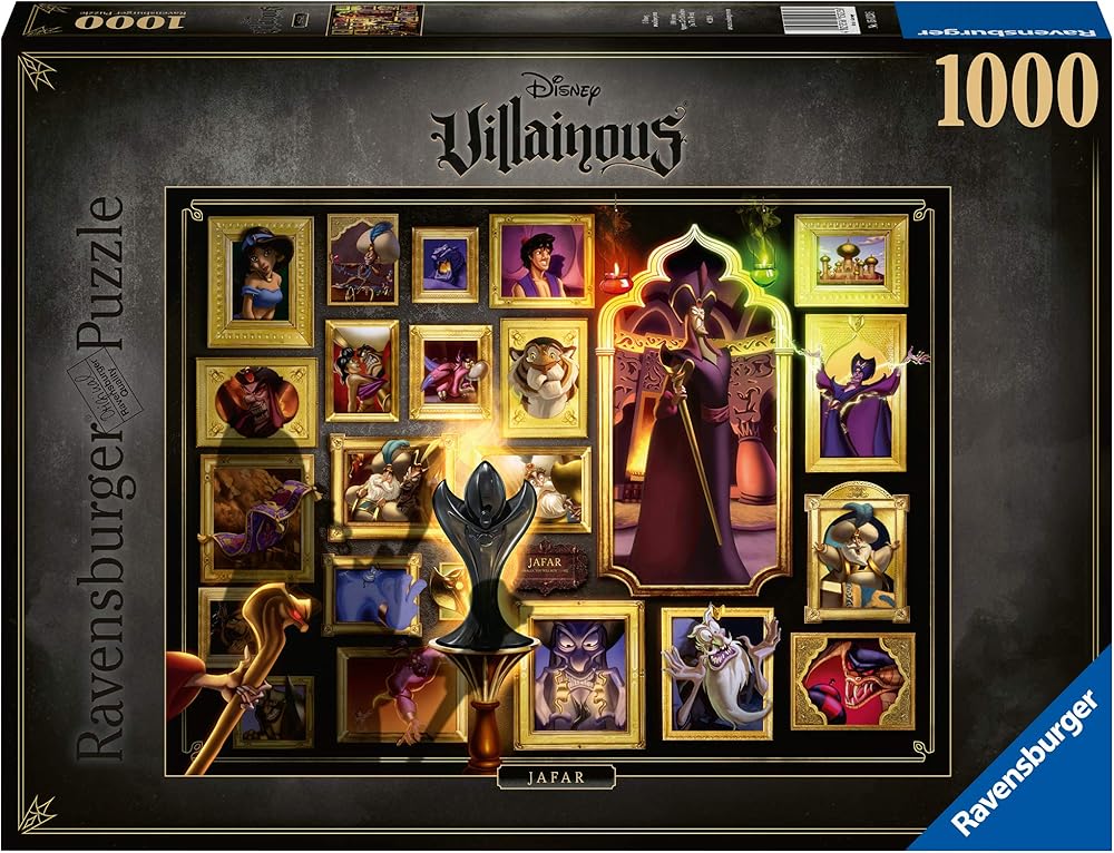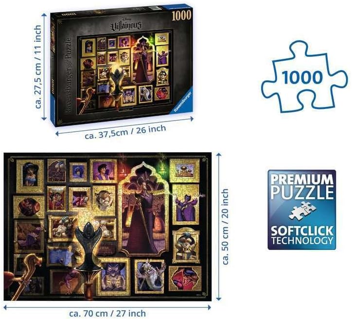 اجمع هذه الأحجية المكونة من 1000 قطعة معًا والتي تضم كابتن هوك وأشهر قراصنة نيفرلاند وعدو بيتر بان اللدود. قم بتجميع الأحجية للكشف عن أكثر لحظات هوك ملحمية بالإضافة إلى الشخصيات الأيقونية مثل بيتر بان والسيد سمي وتينكر بيل وغيرها الكثير. جميع الألغاز الشريرة مبنية على لعبة العائلة "فيلاينوس" الحائزة على جوائز من رافينسبيرجر. استمتع بأحجية العوالم الرائعة لأشرار ديزني المفضلين لديك. شاهد الطرق الشريرة والتعاويذ الشريرة والأفعال المخادعة تتكشف أثناء توصيل كل قطعة. اجمع وقم ببناء الستة!