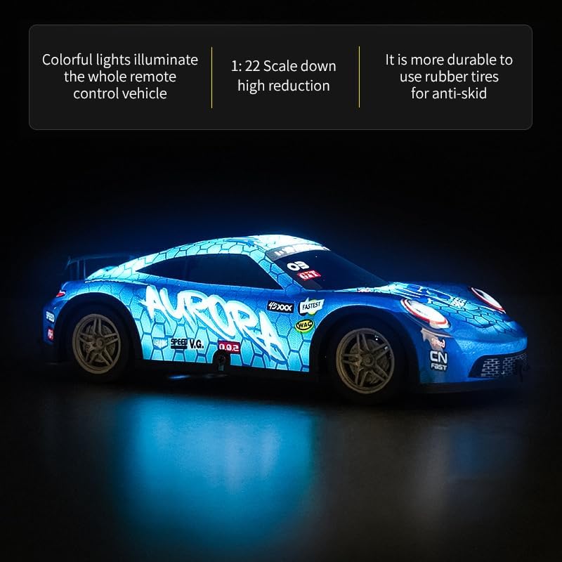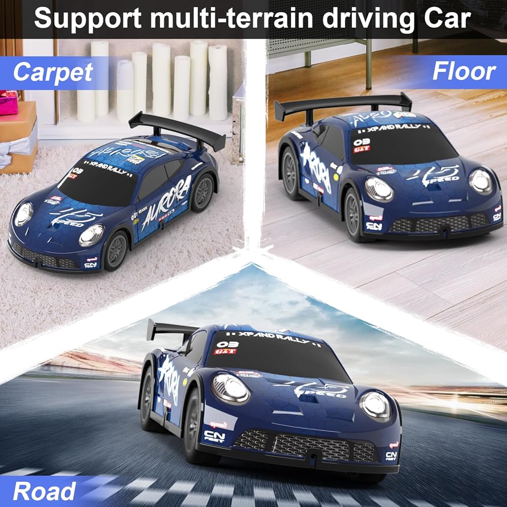 【هدية سيارة Rc مثالية للأطفال】حواف دائرية لحماية الأطفال من الإصابة. تعمل سيارة السباق بشكل جيد على سطح أملس، ومناسبة للعب في الداخل والخارج. لا يمكنك اللعب بها باستخدام جهاز التحكم عن بعد فحسب، بل يمكنك أيضًا وضعها كمعرض على رف العرض. مثالية لهدايا عيد الميلاد أو هدايا الجوارب أو المكافآت وما إلى ذلك.