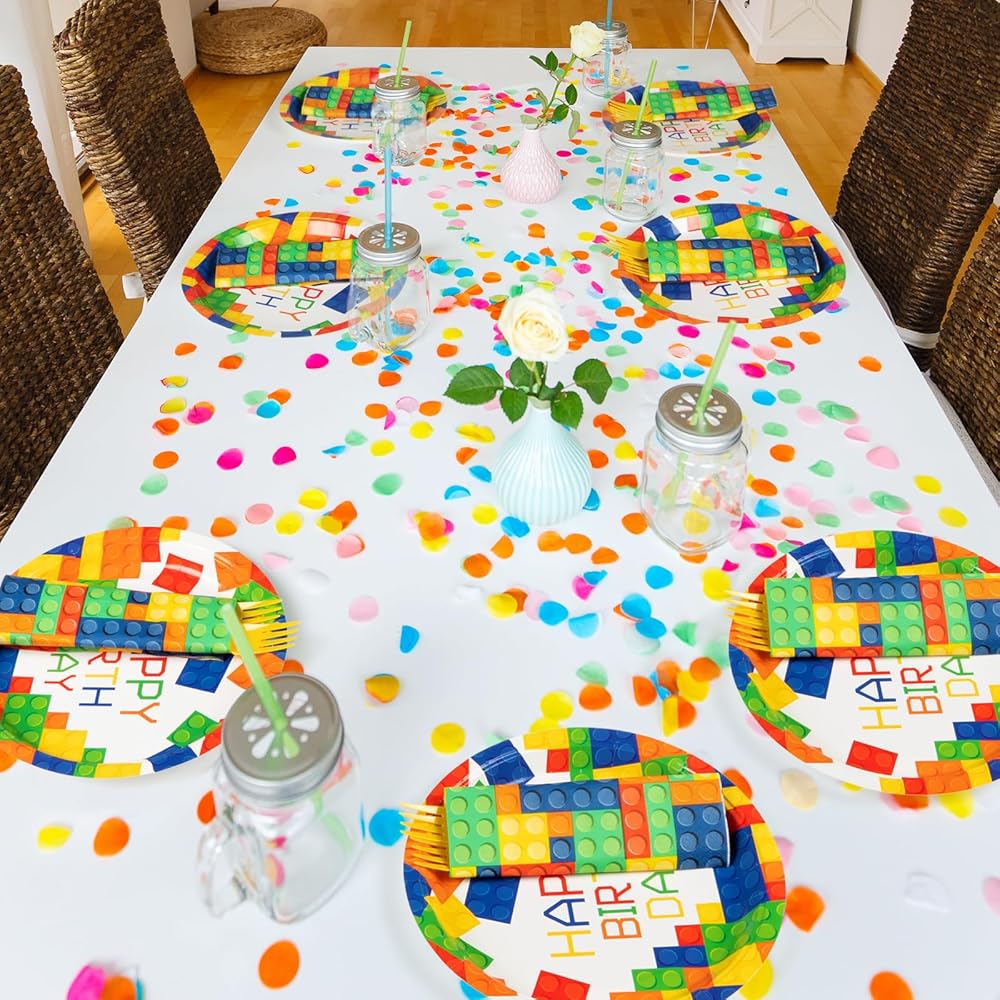【مفرش طاولة رائع】 لا يبدو غطاء الطاولة هذا مقاس 54 انش × 108 انش رائعًا على جميع الطاولات المستطيلة فحسب، بل يجعل التنظيف سهلاً، بالتأكيد إضافة رائعة لأي حفلة مكعبات بناء ملونة