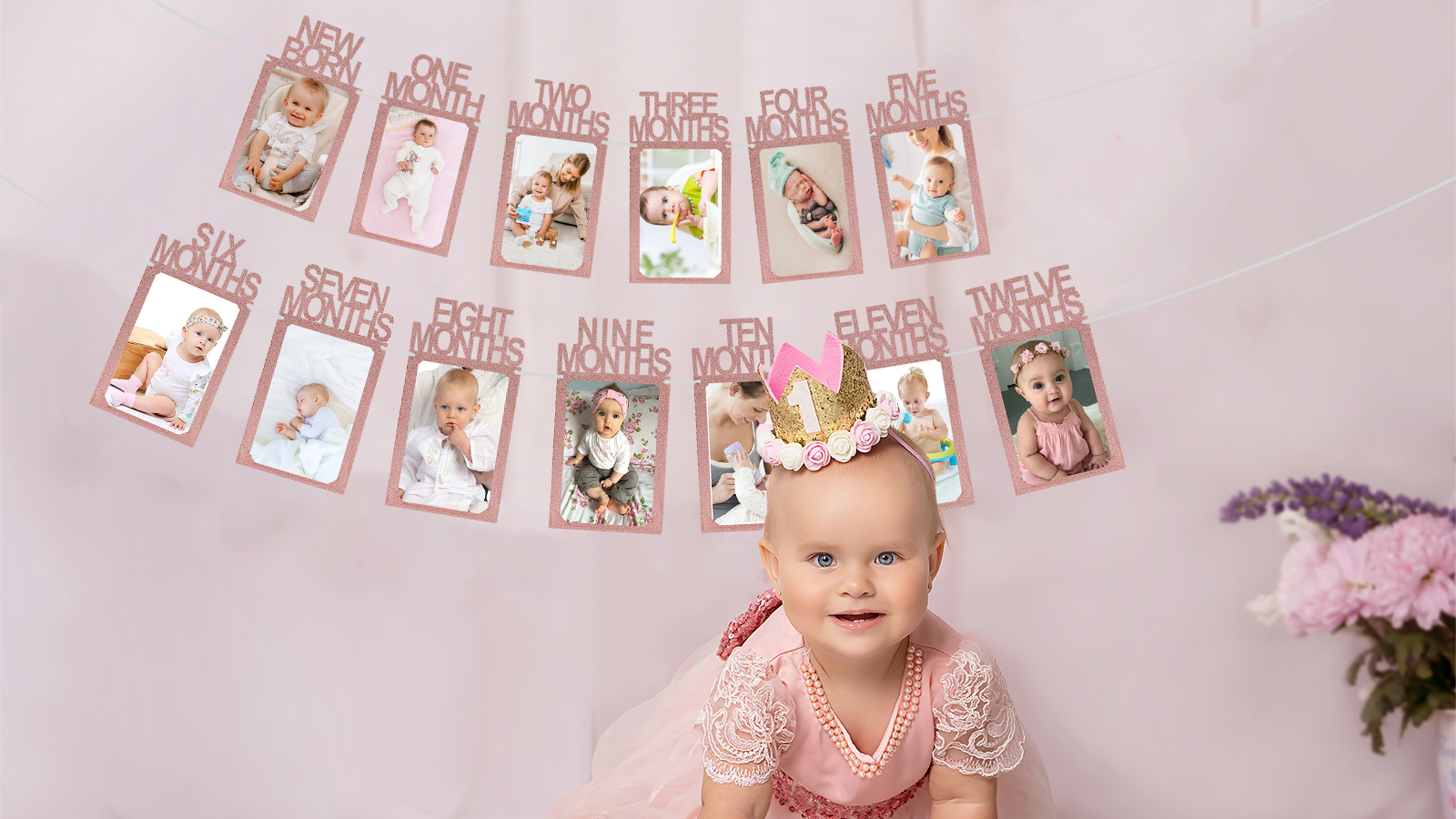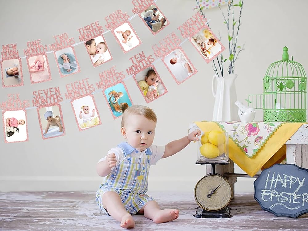 【لافتة صور للأطفال لعيد الميلاد الأول متضمنة】13 قطعة من بطاقات الصور، من حديثي الولادة إلى 12 شهرًا، وأشرطة، وإبرة بلاستيكية. تحتاج إلى ربطه. إنه مريح جدًا بالنسبة لك لتعليقه؛ وهو ما يكفي لاستخدامه لتسجيل الشهر المهم لأطفالك الصغار. تغطي لافتة الصور الأولى هذه جميع مراحل طفلك الجميلة حتى عيد الميلاد الأول من حديثي الولادة وحتى اثني عشر شهرًا.