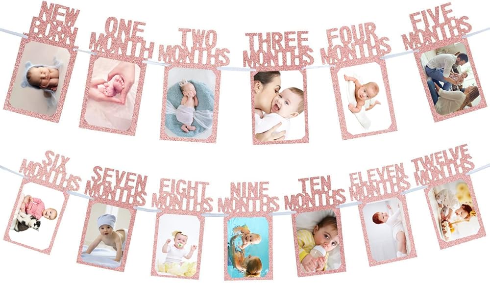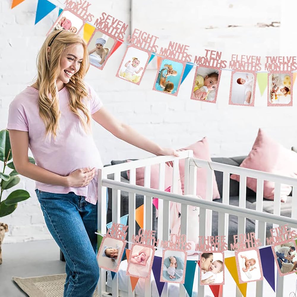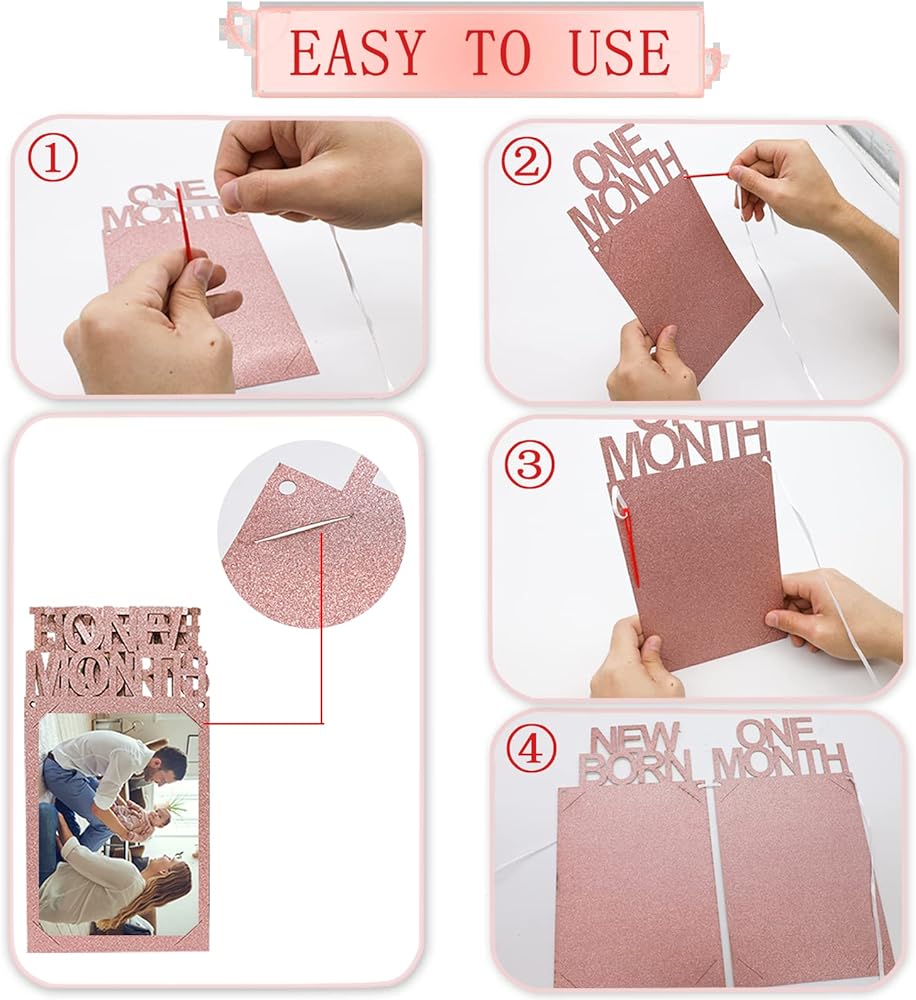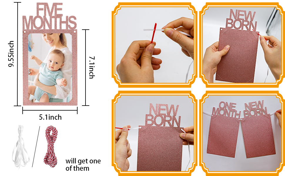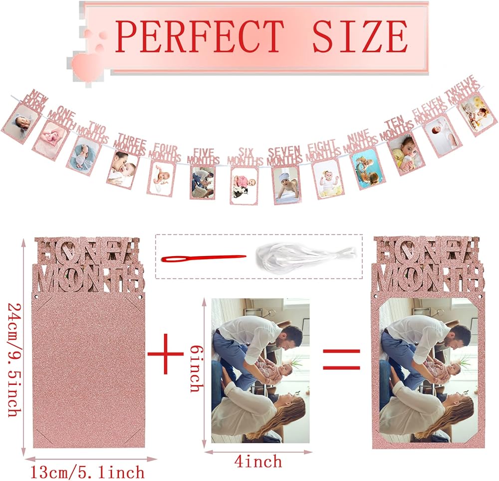 【سهلة التجميع】وفر وقتك في أنشطة التخطيط لحفلات أعياد الميلاد الأولى الأخرى! ما عليك سوى تمرير الصورة (4 × 6 بوصات) أو (5 × 7 بوصات) إلى الإطار. يوجد فتحتان في البطاقات الورقية، فقط قم بتمرير الشريط من خلال الفتحة بإبرة بلاستيكية على لافتة الصور الشهرية وعلقها على الحائط أو النافذة أو الطاولة لإظهار اللافتة الجميلة مع أجمل الصور لأصدقائك و عائلة