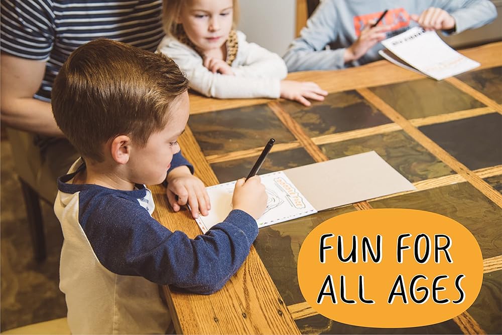 • The Fastest Way for Good, Clean Fun The Get ready to enjoy the new favorite drawing game with your friends and family. It is fun and easy to play for all ages adults, teens, and even kids Plus, it's great for any skill level of artistic talent. Our premium set includes drawing pads, pens, face cards, and theme cards for a creative twist