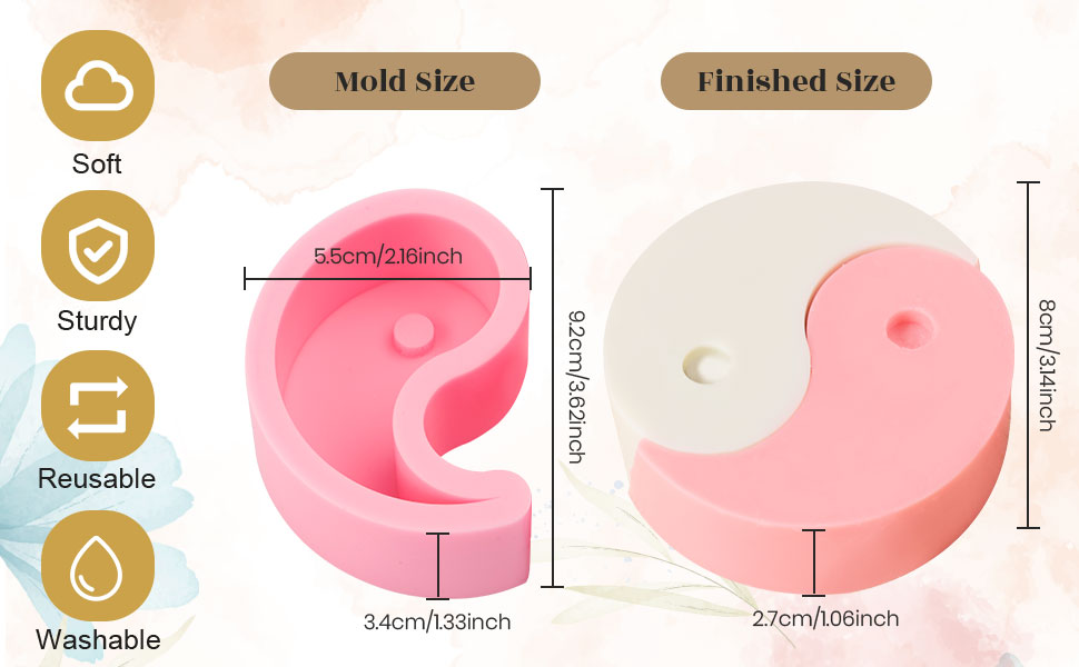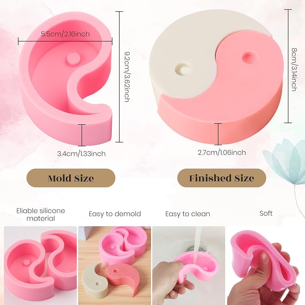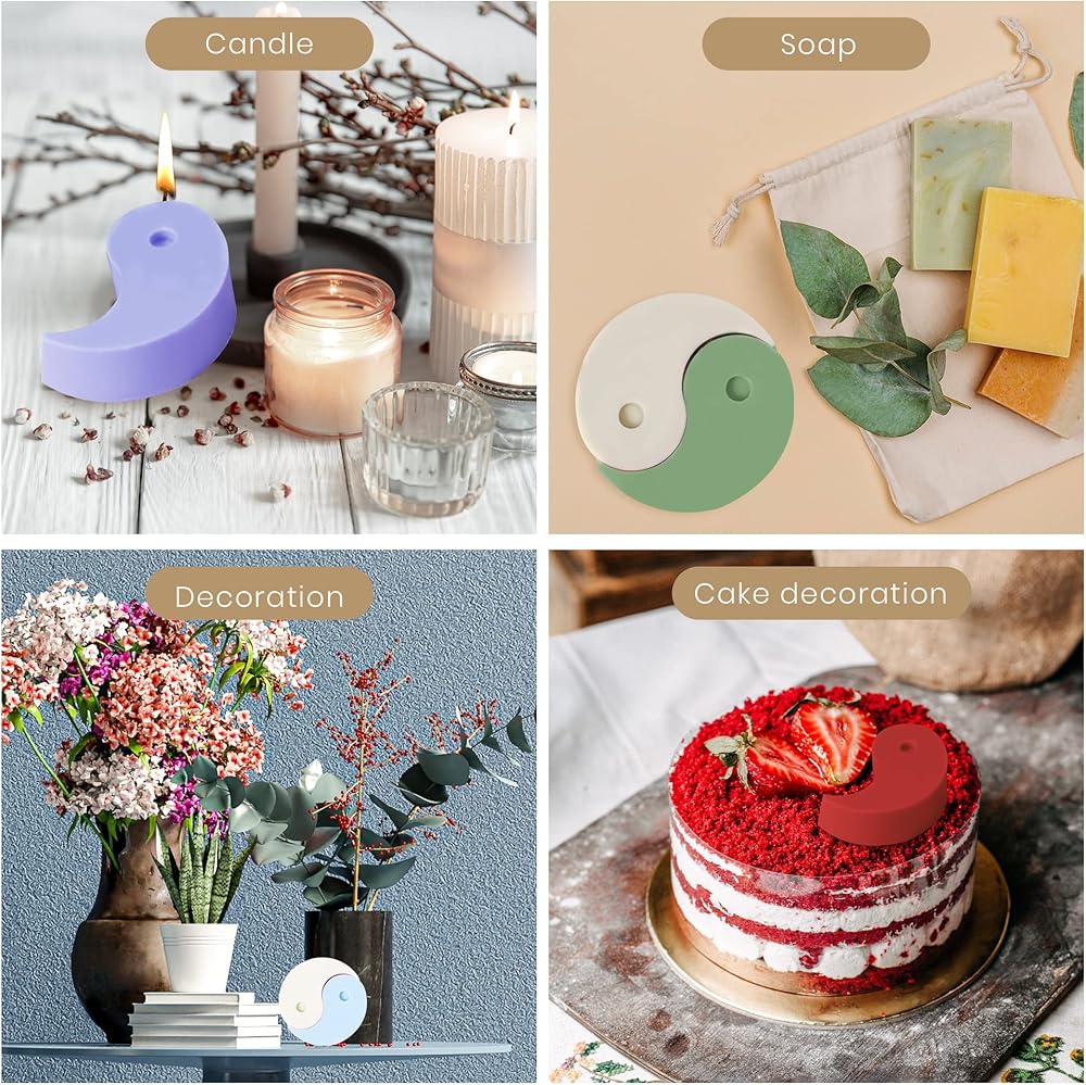 • قالب شموع مثالي: قوالب السيليكون على شكل تاي تشي مثالية لصنع شموع تاي تشي. يمكنك إضافة ديكورات مختلفة بالداخل للحصول على تأثير فريد. فقط اصنع الشموع الخاصة بك في المنزل باستخدام هذه القوالب وابهار أصدقائك!