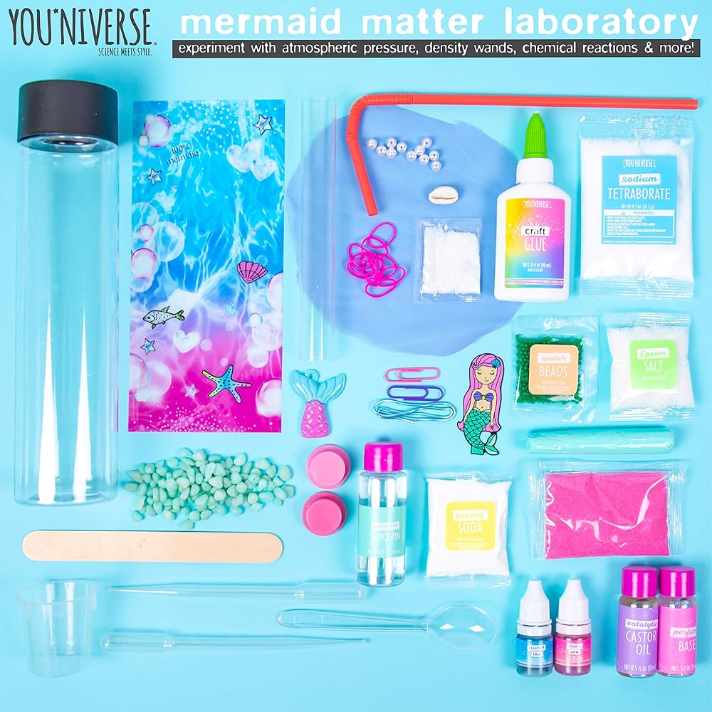 Just My Style You*niverse Mermaid Matter Lab، مجموعات العلوم والتكنولوجيا والهندسة والرياضيات في المنزل للأطفال من سن 6 سنوات فما فوق، تجارب حورية البحر، حفلات أعياد ميلاد حورية البحر، حفلات النوم