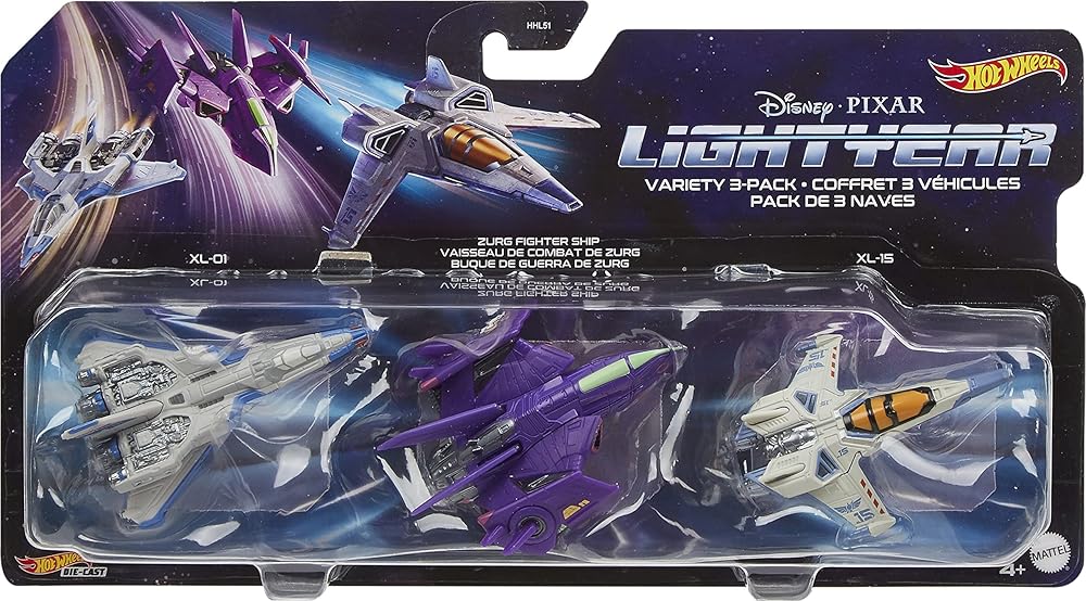انطلق في مهمات بين الكواكب المستوحاة من ديزني وبيكسار لايت يير مع هذه العبوة المكونة من 3 قطع من هوت ويلز Starships المرخصة رسميًا. تتميز هذه العبوة المتعددة بـ XL-15 وXL-1 وZurg Fightership التي تستند إلى تلك التي شوهدت في الفيلم حتى يتمكن المعجبون من إعادة إنشاء مشاهد مفضلة أو ابتكار مشاهد جديدة مستوحاة من الفيلم. تتميز كل مركبة فضائية مصبوبة بديكورات رائعة وأصلية تجعلها مثالية للعب أو العرض. قد تختلف الألوان والديكورات.