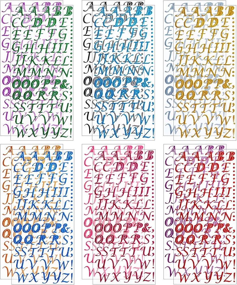 محتويات العبوة: ستحصل على 12 ورقة من ملصقات الحروف الأبجدية اللامعة في 12 لونًا، كل ورقة تحتوي على 56 حرفًا، 672 حرفًا إجماليًا من A-Z؛ يمكنك استخدامها للكثير من الأشياء - بطاقات شكرًا لك، كتاب القصاصات، وحتى لعبة لف عيد الميلاد الخاصة بك، إلخ.