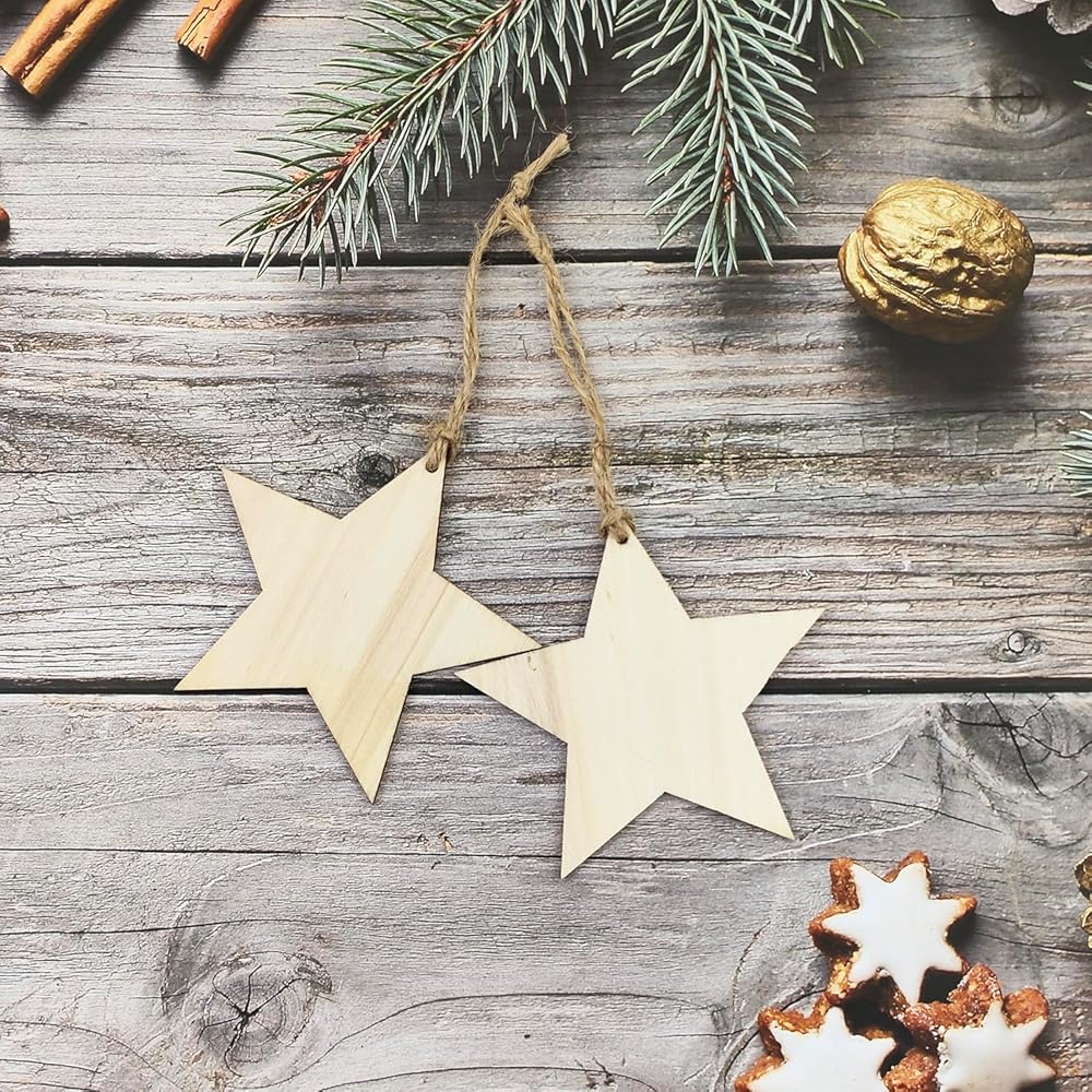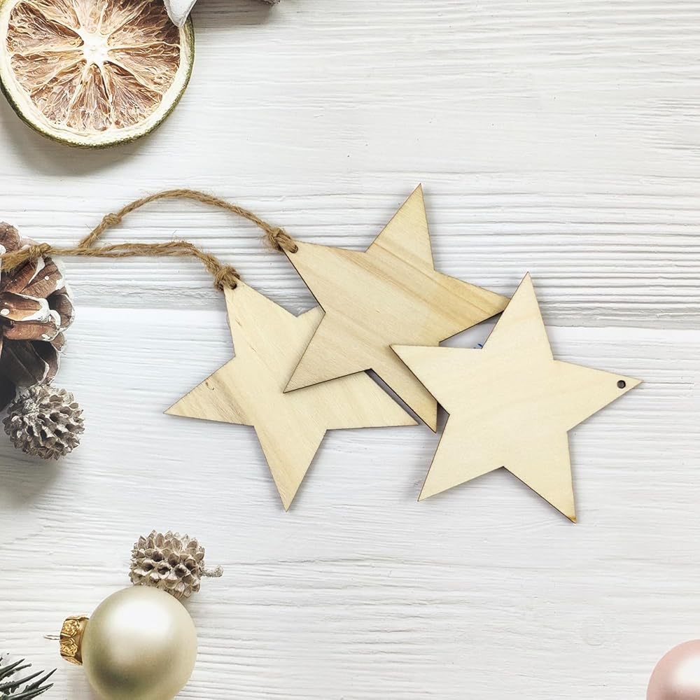 تحتوي العبوة على 32 قطعة من الحرف الخشبية على شكل نجوم للطلاء، استمتع بمتعة الرسم الخشبي مع عائلتك، بما يكفي لاستخدامها في الحياة اليومية.