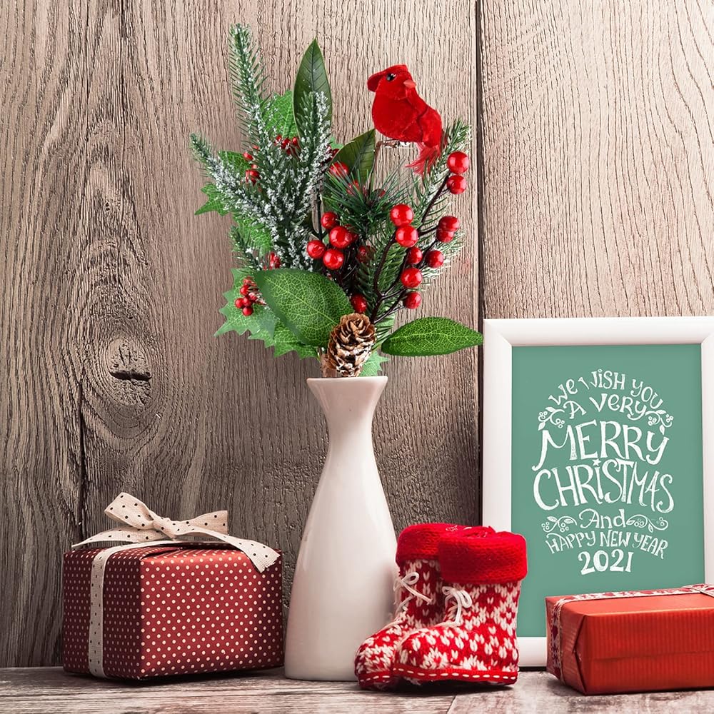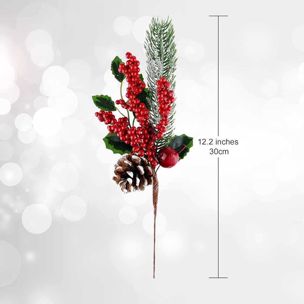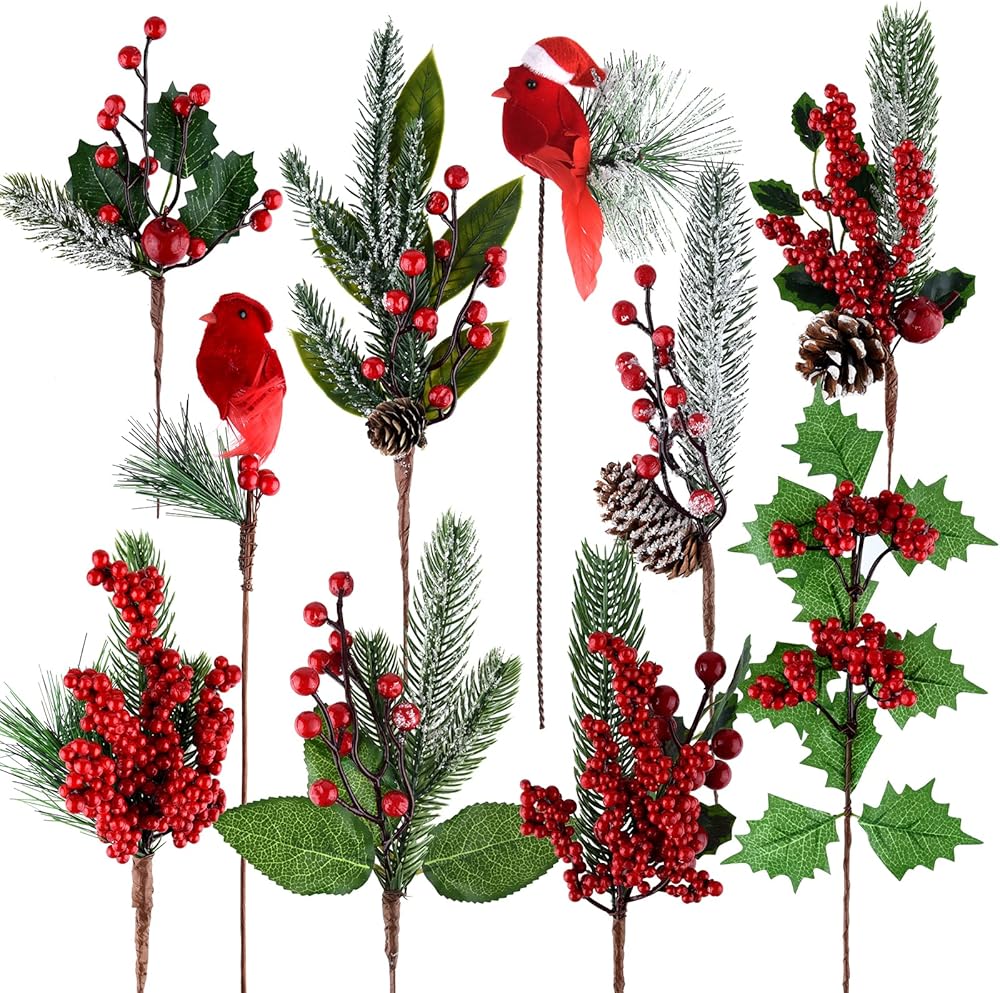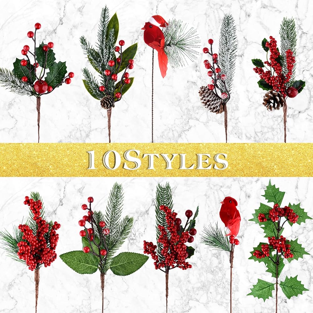 10 قطع من ELECLAND زينة عيد الميلاد الاصطناعي أغصان الصنوبر ينبع رذاذ مع مخاريط الصنوبر الصناعي اللقطات التوت الأحمر هولي أوراق للحرف اليدوية الزهور عيد الميلاد إكليل اللقطات الحلي