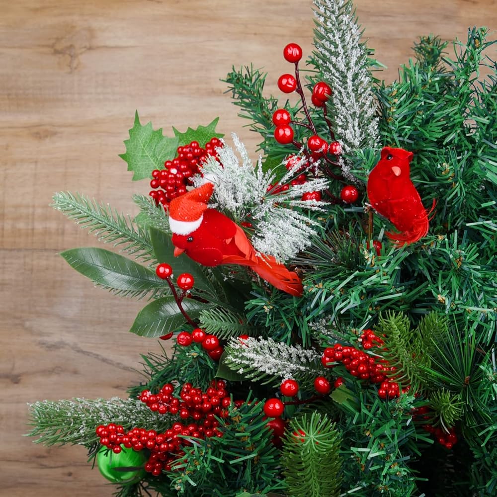 10 قطع من ريش الكريسماس من ايليكلاند، ديكورات فواقع شجرة الصنوبر الاصطناعية، بخاخ مع مخاريط الصنوبر، ريش الصنوبر الاصطناعي، أوراق التوت الأحمر هولي للحرف اليدوية وأكاليل الكريسماس