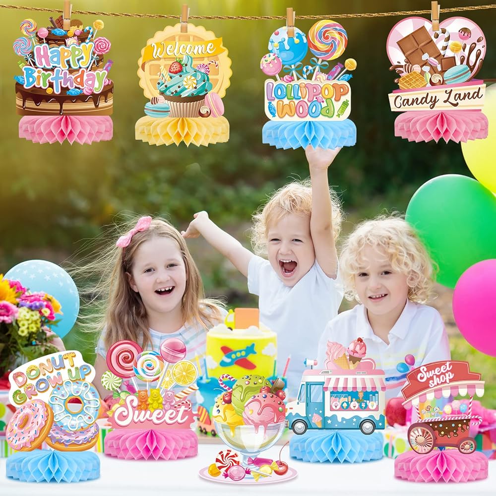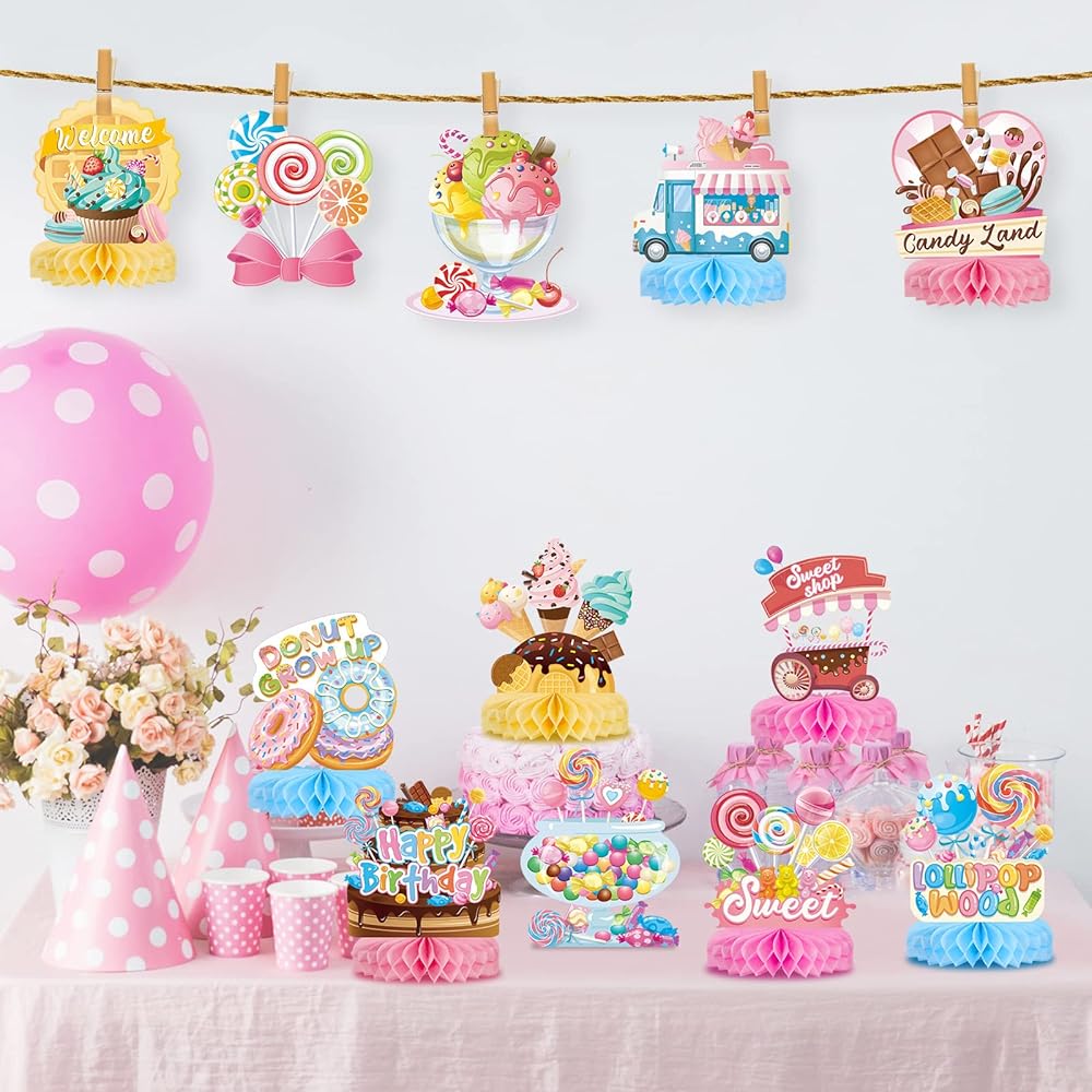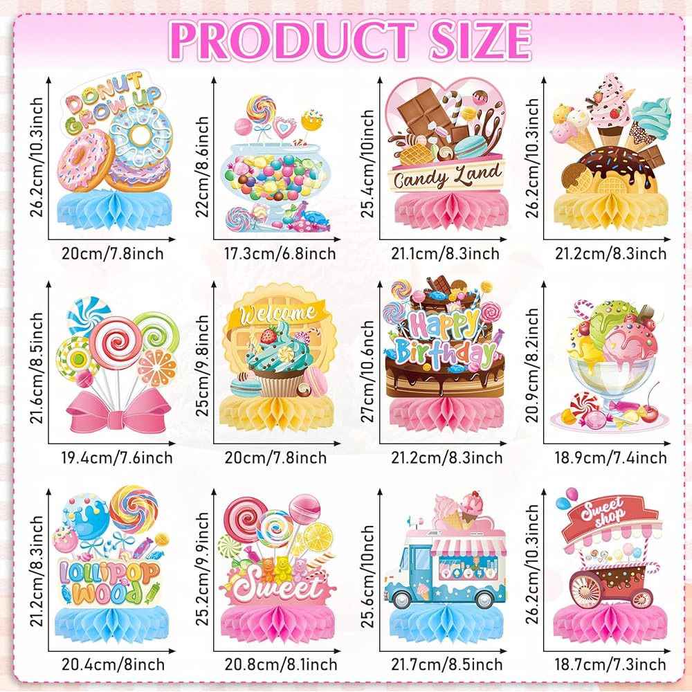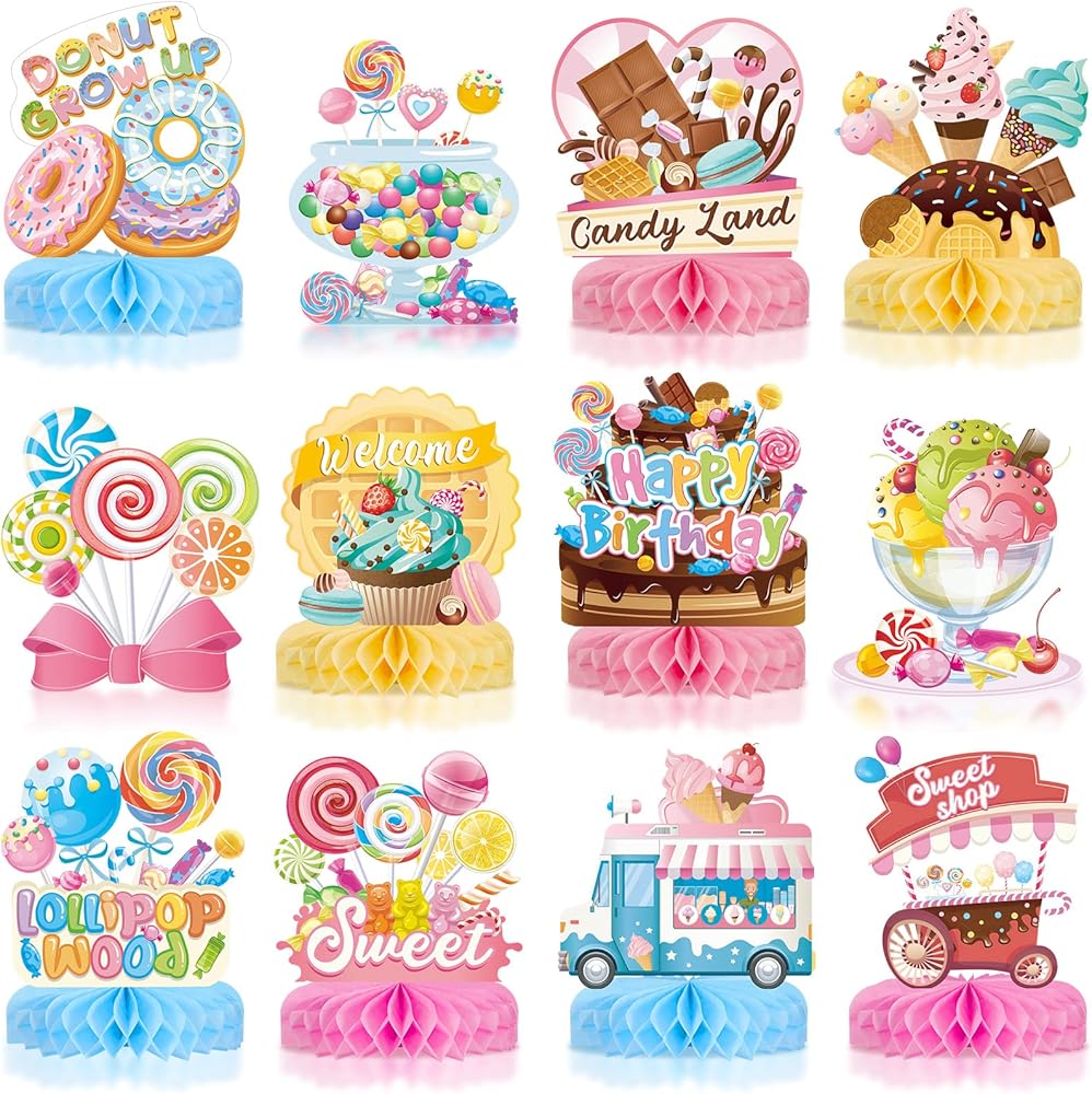 باجين 12 قطعة زينة مركزية على شكل خلية نحل كانديلاند لتزيين طاولة الحفلات والحلويات والحفلات، قطع مركزية لطاولة حفلات عيد الميلاد للبنات الصغيرات وحفلات استقبال المولود الجديد