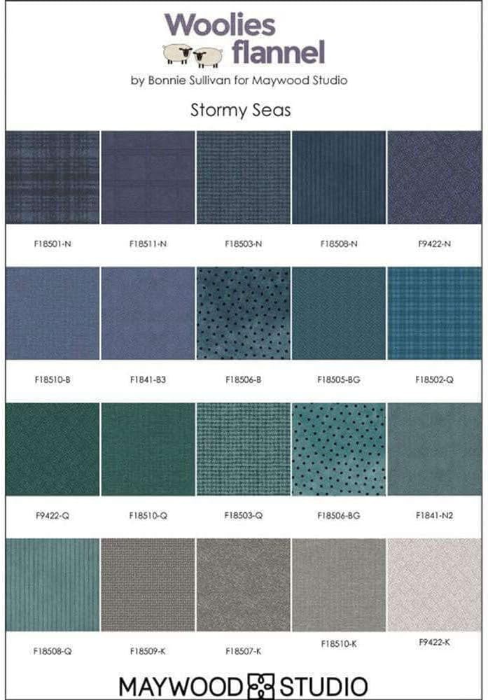 مجموعة قماش مكونة من 42 مربع مقاس 10 انش من مجموعة ووليز فلانيل ستورمي سيز من تصميم المصمم بوني سوليفان لمايوود ستوديو. خط الأساسيات المجربة والحقيقية من بوني سوليفان، ووليز فلانل، يحصل على مظهر جديد لعام 2020!