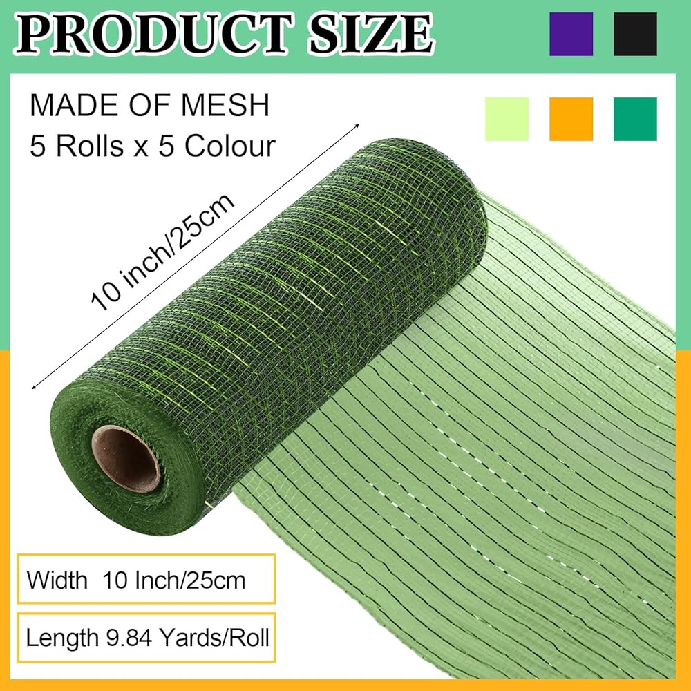 محتويات العبوة: سوف تحصل على 5 لفات من اللفات الشبكية المعدنية و5 لفات من أشرطة البوليستر للأكاليل، ما مجموعه 10 لفات لك؛ يمكن للعدد الكافي أن يغطي احتياجاتك بالكامل لعرض الخيال بنفسك، مع أصدقائك أو عائلتك لصنع أعمال يدوية مخصصة