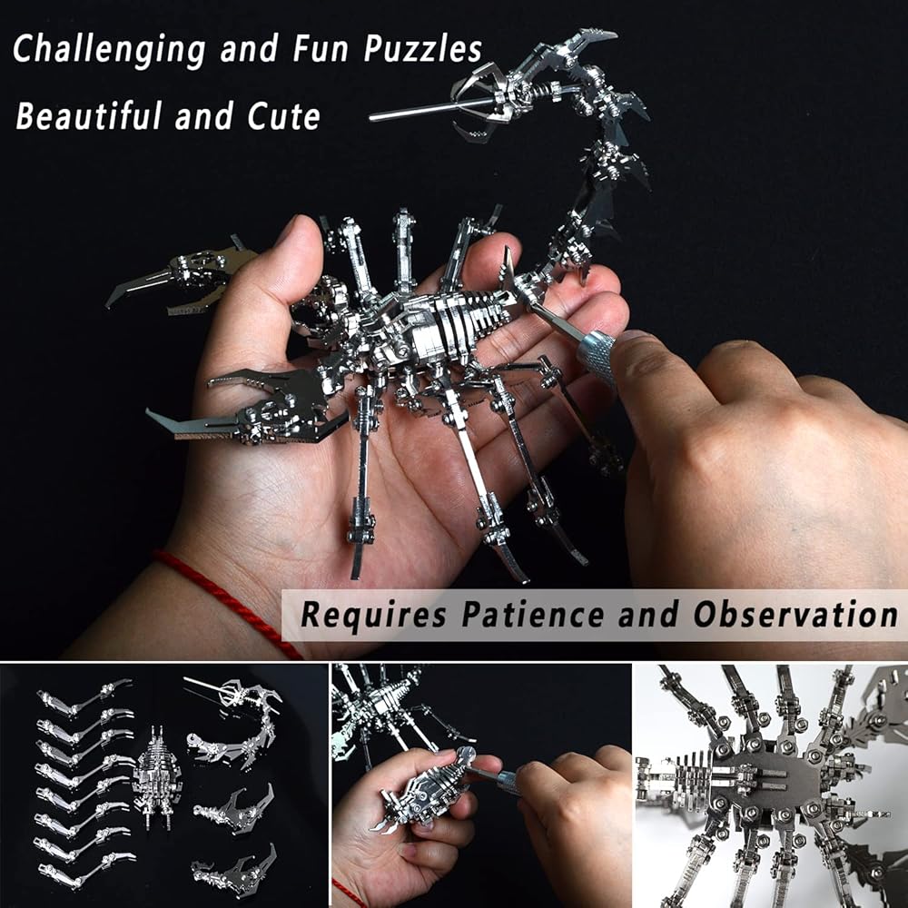 ❤التصميم والتفاصيل: تحتوي الأحجية المعدنية ثلاثية الأبعاد على 190 قطعة من الأجزاء وهي ممتعة للغاية في التجميع. تتميز لعبة العقرب ثلاثية الأبعاد التي تصنعها بنفسك بتفاصيل وتصميم مذهلين. يمكن تحريك مفاصل النموذج. يمكن أن تجلب لك تجربة رائعة يمكنك صنعها بنفسك. مناسبة للأشخاص فوق 12 سنة. هذه أحجية مليئة بالتحديات والمرح، فقط قم بربطها مع البراغي، فهي تتطلب الكثير من الصبر والملاحظة، ويمكنها ممارسة قدرتك العملية وقوتك الدماغية. يستغرق حوالي 3-5 ساعات لإكمالها.
