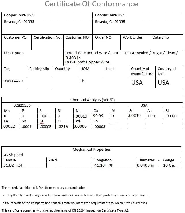 • المعدن: 99.9% نحاس نقي