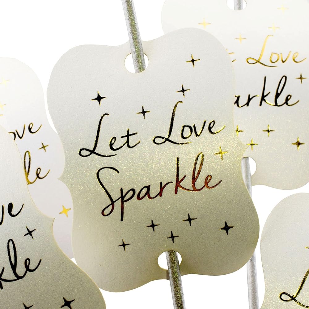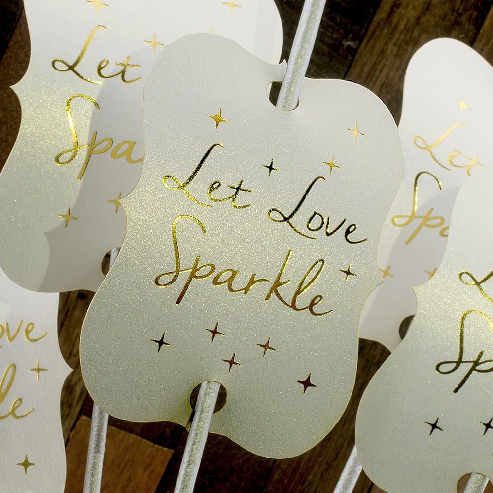 تتكون العبوة من 50 قطعة من بطاقات بيضاء لامعة من رقائق الذهب بختم ساخن لحفلات الزفاف.