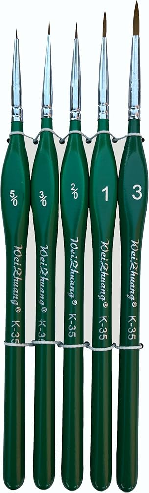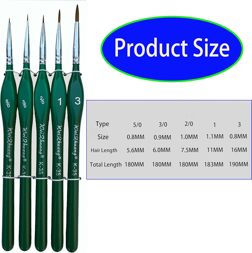 【Include】:The detail paint brush has 5 assorted point tips with different thickness, ensure that you always have just the right paint brush for the job. This set of detailing brushes offers the perfect small paint brush for each phase of all your artistic painting projects, including5/0, 3/0, 2/0,1,3 (no exaggerating size numbers)